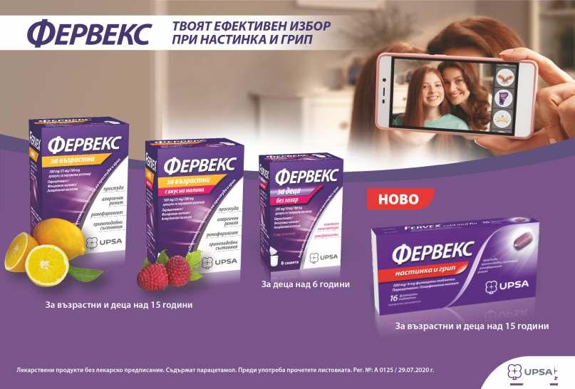 ПРЕПОРЪКА НА МЕСЕЦА 22 .bg АПТЕКИ 90 9, лв. 9010, лв. ОТРИВИН МЕНТОЛ 0,1% спрей за нос, 10мл Отпушва носа след 2 минути! Облекчава болката и напрежението в синусите. Отривин Ментол 0,1% спрей за нос, разтвор е лекарствен продукт без лекарско предписание за възрастни и юноши над 12 години. Съдържа ксилометазолинов хидрохлорид. Преди употреба прочетете листовката. A0168/01.08.2019 ; CHBA/CHOTRI/0005/19 Търговски марки притежавани или лицензирани от група компании © GSK. 2019 Групата компании GSK или техен лицензодател. OTC 3020, лв. УМКАЛОР 20мл При първи симптоми на настинка и грип. Лекарствени продукти за възрастни и деца над една година (капки) и над 6 години (таблетки). Съдържат EPs® 7630 екстракт от пеларгониум. Преди употреба прочетете листовката. Без рецепта. ИАЛ А 0217/07.12.2020 г. OTC 0822, лв. 909, лв. TAVIPEC FORTE 20 капсули При вирусни и бактериални инфекции. • Лечение на остър и хроничен синузит, бронхит или кашлица. • Укрепва имунната система. • Втечнява гъстия секрет и улеснява отхрачването • Потиска растежа на бактерии и гъбички • Може да се комбинира с антибиотици • За възрастни и деца над 12г. 9011, лв. 9013, лв. 9010, лв. МАРИАМЕД 100мл, сироп Сироп с три съставки и силен троен ефект • При дразнеща кашлица; • При болно гърло ; • За здрав имунитет; • С бяла ружа, прополис и мед. ТЕРАФЛУ ФОРТЕ ПРОСТУДА И КАШЛИЦА 500 mg/6,1 mg/100 mg 16 твърди капсули НОВО! СИЛАТА НА ТЕРАФЛУ В КАПСУЛИ Започва да облекчава кашлицата след 15 минути* *на база абсорбцията на гвайфенезин Използвайте Терафлу Форте Простуда и Кашлица САМО ако имате ВСИЧКИ изброени симптоми: болка и/или температура, запушен нос и продуктивна кашлица. 908, лв. 8010, лв. 90 6, лв. 908, лв. ® ЕКСПЕКТОРАНС №5 90 мл, сироп