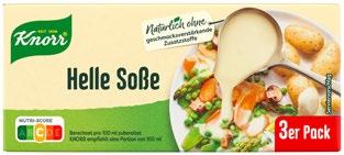 Thomy Delikatess Mayonnaise oder Remoulade je 200-ml-Tube (1 l = 7.95) Aktion 1.59 Mondamin Grießbrei je 89-g-Btl. (1 kg = 8.88) oder Milchreis je 125-g-Btl. (1 kg = 6.32) Aktion 0.79 Knorr Feinschmecker Sauce Hollandaise Klassisch je 35-g-Btl. (1 kg = 19.71) oder 3 Pfeffer Sauce je 40-g-Btl. (1 kg = 17.25) Aktion 0.69 Böklunder Echte Land-Bockwurst 180-g-Abtropfgew., je 345-g-Glas (1 kg = 9.39) Aktion 1.69 Knorr Soße 3er-Pack versch. Sorten, ausreichend für 3 x 250 ml, je Pckg. Aktion 0.69 Mazola Sesamöl je 100-ml-Fl. (1 l = 13.90) Aktion 1.39 Hellmann’s Real Mayonnaise je 250-ml-Fl. (1 l = 5.16) oder Tomato Ketchup je 430-ml-Fl. (1 l = 3.00) Aktion 1.29 Ewu Soljanka je 700-ml-Glas (1 l = 3.17) Aktion 2.22 oder Spaghetteria Spinaci je 160-g-Btl. (1 kg = 6.19) Aktion 0.99 Ben’s Original Express Reis Mediterran je 250-g-Btl. (1 kg = 4.76)