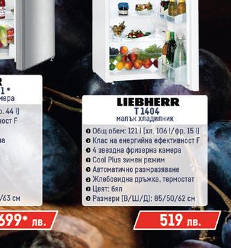 Хладилник с фризер • Обем 344 л (230/114) • No Frost Енергиен клас: F • Kонсумация (kWh/година): 295 • Инверторен компресор с 20 години гаранция • All-Around Cooling • Размер: 185,3х60х65,8 см • Цвят: инокс 979.99 F A G kWh 313 331л. no frost 186 см 59,5 см 180 см kWh година 280 270л. no frost диспенсър 55 см FXCA 2890 NF Хладилник с фризер Обем 270 л (195/75) No Frost • Енергиен клас: F Kонсумация (kWh/година): 280 Стъклени полици и рафтове Диспенсер за студена вода: Размер: 180х54х59,5 см Цвят: Инокс 689.99 F A G FXCA 3790NF/ FXCA 3797NF BK*/FXCA 3795NF IX** Хладилник с фризер • Обем: 295 л (207/88) • Енергиен клас F • NO FROST • Консумация (kWh/год.): 299 • LED осветление • Размери: 185,5х60х60 см Цвят: бял/черен*/инокс** 659.99 699.99* 699.99** 185,5 см kWh година 299 295л. no frost F A G W5 921E OX 2 Хладилник с фризер • Обем: 372 л (261/111) No Frost • Енергиен клас: E • Kонсумация (kWh/година): 249 • LED осветление в хладилната част • Стъклени полици и рафтове • Размер: 201х60х67 см • Цвят: Инокс 859.99 201 см kWh годин 249 372л. E A G 174 см kWh годин 274 254л. F A G CAA 55 1 Хладилник с фризер Обем: 254 (154/100) • Енергиен клас: F Kонсумация (kWh/година): 274 4 чекмеджета във фризера Стъклени полици и рафтове Автоматично размразяване Размери: 174x55x58 см 619.99 180 см SJ-BB05DTXWF/ SJ-BB05DTXLF* Хладилник с фризер • Oбем: 288 л (204/84) • Kонсумация (kWh/г): 280 • LED осветление • Nano Frost • Размер: 180x54x59,5 см • Цвят: бял/инокс* 569.99 599.99* F A G SJ-BB02DTXWF Хладилник с фризер Oбем: 230 л (146/84) Енергиен клас: F Kонсумация (kWh/година): 265 Стъклени полици и рафтове LED осветление Wine Rack • Odour free Размер: 152х54х59,5 см 519.99 152 см kWh годин 265 230л. F A G kWh годин 280 288л. 170 см 54 см FKL268FWT0BG Хладилник с фризер • Обем: 268 л (184/84) • Консумация (kWh/година): 277 • Енергиен клас: F • Размер: 170х54х59.5 см kWh година 277 268л. F A G 499.99 ХИТ ЦЕНА 11 x 99,99 лв. 8 x 77,49 лв. 8 x 107,49 лв. 20 x 70,00 лв. 20 x 87,49 лв. 11 x 113,64 лв. 11 x 109,09 лв. 8 x 122,50 лв. 8 x 86,25 лв. 8 x 71,25 лв. 8 x 75,00 лв. 5 x 104,00 лв. 5 x 100,00 лв. 8 x 82,50 лв. 8 x 87,50 лв. 8 x 87,50 лв.