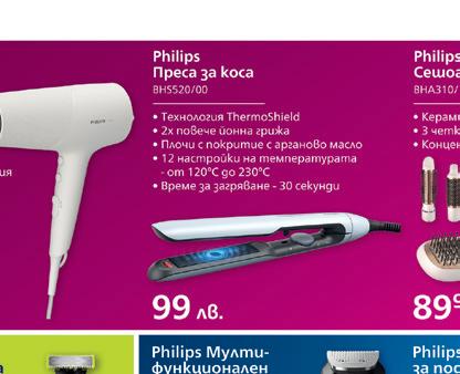 Валидни от 17.03. до 10.04.2023 G A G 43/50*DH55UQ QLED Android TV QLED UHD-4K Tелевизор 43/50*'' (109/127* см) • Резолюция: 3840x2160 UHD-4K • Android • Smart TV • Wi-Fi: Вграден • Цифров тунер: DVB T2/C2/S2 2xHDMI • 1xUSB • Оптичен изход 599.99* 499.99 65PUS8507/12 UHD-4K Tелевизор 65'' (165 см) • Резолюция: 3840x2160 UHD-4K • Wi-Fi: Вграден • Smart TV • Android • HDR 10+ Ambilight 3 Dolby Atmos • Dolby Bass Enhancement • Dolby Vision • HLG • Micro Dimming Perfect P5 Perfect Picture 1599.99 43-FFA-5230 ANDROID SMART Tелевизор 43'' (109 см) Резолюция: 1920X1080 Full HD Цифров тунер: DVB-T/T2/C/MPEG4 Smart TV You Tube Net Flix HDR (HDR10, HLG) DOLBY DIGITAL PLUS (DD+) • Digital Noise Reduction GoogleCast 2xHDMI 1xUSB E A G 399.99 QLED 65OLED707/12 OLED UHD-4K Tелевизор 65'' (165 см) Резолюция: 3840x2160 UHD-4K Wi-Fi: Вграден Smart TV Android HDR 10+ • Ambilight 3 Dolby Atmos Dolby Vision HLG Micro Dimming Perfect P5 AI Perfect Picture • 120 Hz G-sync VRR • Freesync G A G 2849.99 55PUS8007/12 UHD-4K Tелевизор 55'' (139 см) Резолюция: 3840x2160 UHD-4K Wi-Fi: Вграден Smart TV Android Тип процесор: P5 Perfect Picture Dolby Vision Dolby Atmos Clear dialogue • Цифров тунер: DVB T2/C2/S2 3xHDMI • 2xUSB • Micro Dimming Pro 3-странен Ambilight HDR10+1099.99 F A G F A G 55QA4263DG ANDROID SMART QLED UHD-4K Tелевизор 55'' (139 см) Резолюция: 3840x2160 UHD-4K Smart TV Android Wi-Fi: Вграден Quad core процесор • TPQ 2400 Wide Color Gamut Sound by ONKYO Dolby Audio 3xHDMI 2xUSB 699.99 QLED E A G 50UA2D63DG ANDROID SMART UHD-4K Tелевизор 50'' (127 см) Резолюция: 3840x2160 UHD-4K Smart TV • Android • Wi-Fi: Вграден Quad core процесор • Total Picture Quality 2100 DOLBY VISION HDR Sound by ONKYO • Dolby Atmos DTS 3xHDMI 2xUSB HDR TRU Micro Dimming • TRU Flow 629.99 E A G 43QA5D63DG ANDROID SMART QLED UHD-4K Tелевизор 43'' (109 см) • Резолюция: 3840x2160 UHD-4K • Smart TV Android Net Flix 4K • You Tube Wi-Fi: Вграден Quad core процесор • TPQ 2600 DOLBY VISION HDR • Sound by ONKYO Dolby Atmos DTS • 3xHDMI • 2xUSB • Оптичен изход • HDR • TRU Micro Dimming Chromecas build In 599.99 E A G QLED 32WA2B63DG ANDROID SMART Tелевизор 32'' (81 см) Резолюция: 1366x768 HD Ready Цифров тунер: DVB-T/T2/C/MPEG4 Smart TV Android Chromecast NetFlix You Tube • Wi-Fi: Вграден • HDR 2xHDMI • 1xUSB • Dolby Audio • Equalizer 319.99 F A G 2433Т2 Tелевизор 24'' (61 см) • Резолюция: 1366x768 HD Ready • Цифров тунер: DVB-T/T2/C/MPEG4 • USB media player PC • SCART • VGA HDMI PVR функция • Захранване на 12V 179.99 50NV88UWS Tелевизор 50'' (127 см) Резолюция: 3840x2160 UHD-4K Smart TV Wi-Fi: Вграден Цифров тунер: DVB-T/T2/C/MPEG4 2xHDMI • 1xUSB 499.99 F A G F A G CHROMECAST 3 Медия плеър Поддържани формати: AAC, MP3, MP4, WAV, WebM Операционна система: Android Функции: Smart • Full HD Процесор: ARM Cortex-A7 WiFi връзка: 802.11 b/g/n/ac; SDV5200/12 ТВ антена • Вътрешна активна антена • 3G/4G/LTE филтър 74.99 49.99 HD1306B DVB-T/RF ТВ тунер Поддържа новия формат MPEG4 за цифрова ефирна телевизия в България Мултимедиен плеър – разглеждане на снимки, възпроизвеждане на музикални файлове и филми със субтитри на български език • PVR функция Електронен телевизионен справочник (EPG) Съвместим с телевизори поддържащи HDMI и RCA (чинчове) Пълнофункционално дистанционно управление 54.99 Diva 1040TS Стойка за телевизор • За екрани: от 10" до 40" • Максимално тегло: 25 кг • Дистанция до стената: 57 мм • Наклон: 2° до +12° • Завъртане: +- 25° 24.99 SQM7442 ТВ стойка Максимално тегло: 45 кг Дистанция до стената: 30 мм За екрани: до 65'' 44.99 118124 ТВ стойка Максимално тегло: 35 кг Дистанция до стената: 90 мм Завъртане/Наклон: до 180° Наклон: до 15° Подходяща за екрани: 32-65” 59.99 11 x 99,99 лв. 11 x 145,45 лв. 8 x 78,74 лв. 5 x 139,99 лв.