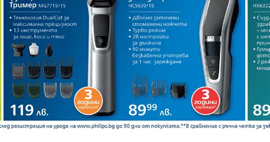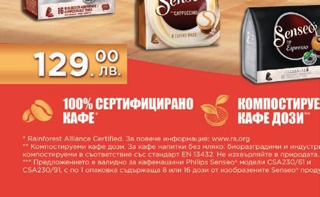други уреди и в ниши Режим Ваканция: предотвратява ненужния разход на енергия Размери: 176х60х66 см E A G 829 939 849 Съдомиялна машина SMS4HVI33E C A G D A G Г ОДИНИГАРАНЦИЯНАМОТОРА Г О ДИНИГАРАНЦИЯНАМОТОРА * ГАРАНЦИЯПРИЩЕТА ЗА ЦЕЛИЯ ЖИВОТ НА УРЕД А АРАНЦИЯПРИЩЕТА ЗА ЦЕЛИЯ ЖИВОТНА УРЕДА AquaStop ** 11 x 77,18 лв. 11 x 75,36 лв. 11 x 85,36 лв. Прахосмукачка-робот Rowenta X-Plorer Serie 50 Total Care RR7387 • 2в1 почистване с прахосмукачка и с моп • Системна навигация • Подходяща за дом с домашни любимци и хора с алергии • Управление през смарт телефон и гласови команди X-TREM Compact 2-в-1 RH1239 • Технология Flex за почистване под ниски мебели • Подова зарядна станция за лесно съхранение • Време за работа до 40 мин* • Аксесоари *при работа с ръчната прахосмукачка Compact Power Cyclonic RO3786 • Циклонна технология без торбичка • 99,98% филтрация на праха • 1.5 л контейнер • Аксесоари • 750 W мощност 449 лв. 329 лв. 199 лв. *60-дневният тест период е валиден за следните модели прахосмукачки Rowenta Power XXL RO31xx, Compact Power XXL RO48xx, Compact Power RO39xx, Compact Power Cyclonic RO37xx, RHxx, закупени в периода 1.02.2023 г. до 31.01.2024 г. Повече информация на www.rowenta.bg. прахосмукачка Rowenta ТЕСТ П ЕРИОД ТСЕТ П ДОИРЕ 60 дни* ТЕСТ П ЕРИОД ТСЕТ П ДОИРЕ 60 дни* 5 x 89,80 лв. 5 x 65,80 лв. 5 x 39,80 лв. Предложенията са валидни от 17.03. до 10.04.2023 г. facebook.com/zora.bg instagram.com/zora_ltd тел.: 02/813 03 94, 02/813 03 78 facebook.com/zora.bg ONLINE МАГАЗИН www.zora.bg zora.bg