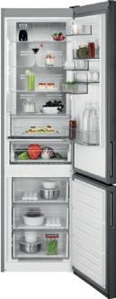 Хладилник с фризер Обем: 367 л (266/101) Енергиен клас: E NO FROST Kонсумация (kWh/година): 250 • Външен дисплей LED осветление CustomFlex® 360° циркулация Размер: 201x59,5x65 см Цвят: Черен инокс 1749.00 kWh година 250 367л. no frost E A G