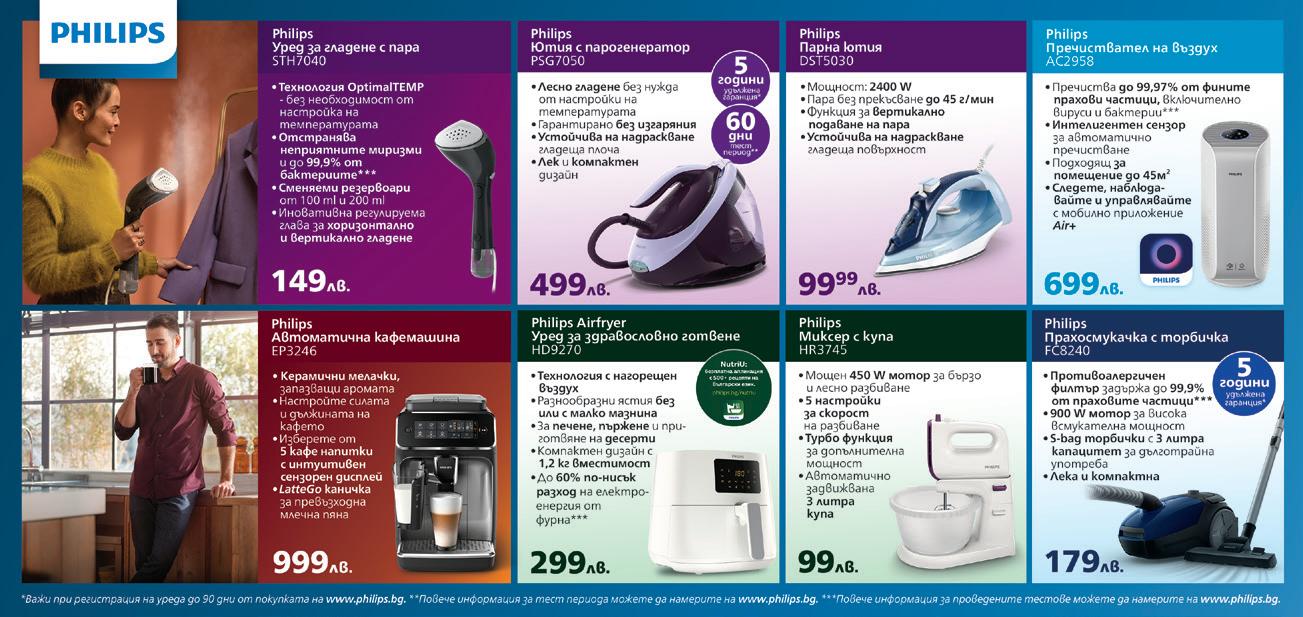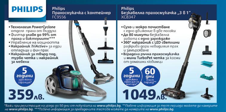 Валидни от 02.12. до 30.12.2022 8 x 99,99 лв. 179 лв. • 3 нива на филтрация • Ниско ниво на шум 65 dB(A) • Направена от до 70% рециклирана пластмаса* • Аксесоари • 900 W мощност *пластмаса: 66% от общото тегло на прахосмукачката Прахосмукачка без торбичка Rowenta Swift Power Cyclonic RO2981 • Циклонна технология • 3 нива на филтрация на праха до 99,98% • EFFITECH мотор за дълбоко почистване • Компактен дизайн • Аксесоари 279 лв. Безкабелна стик прахосмукачка Rowenta Dual Force 2в1 RH6756 • Система 2 в 1 – вградена ръчна прахосмукачка • Циклонна технология • Моторизирана четка с LED светлини • Литиево-йонна батерия 21.6 V • Време за работа на минимална мощност до 75 минути *60-дневният тест период е валиден за следните модели прахосмукачки Rowenta Power XXL RO31xx, Compact Power XXL RO48xx, Compact Power RO39xx, Compact Power Cyclonic RO37xx, RHxx, закупени в периода 01.02.2022 - 31.01.2023 г. Повече информация на www.rowenta.bg. 299 лв. Прахосмукачка-робот Rowenta X-Plorer Serie 50 Total Care RR7387 • 2в1 почистване с прахосмукачка и с моп • Системна навигация • Подходяща за дом с домашни любимци и хора с алергии • Управление през смарт телефон и гласови команди 449 лв. Многофункционална прахосмукачка Rowenta X-Force Flex 9.60 Animal Care RH2079 • Технология Flex за почистване под ниски мебели • Циклонна технология • 99% филтрация на праха • Време за работа до 45 мин* • Аксесоари *при работа с ръчната прахосмукачка 499 Green Force Max Silence RO6164 ТЕСТ П ЕРИОД ТСЕТ П ДОИРЕ 60 дни* 5 x 99,80лв. 5 x 89,80лв. ТЕСТ П ЕРИОД ТСЕТ П ДОИРЕ 60 дни* MO4250CLB Микровълнова фурна Мощност: 700 W Oбем: 20 л • 5 функции Инфра нагревател: 800 W Stirrer технология –без въртяща се чиния Аналогов таймер Керамично дъно на вътрешната час Цвят: Черно 329.99 MH6535GIH Микровълнова фурна Мощност: 1150W • Oбем: 25 л 900W грил LED дисплей Smart Inverter магнетрон с 10 години гаранция Диаметър на чинията 292 мм Цвят: бял 249.99 MS23K3513AS/OL Микровълнова фурна Oбем: 23 л • Мощност: 800W 6 нива на мощност Вътрешно керамично покритие Диаметър на чинията 28,8 мм Размер: 275х489х274 мм 199.99 MS2042D Микровълнова фурна Oбем: 20 л Мощност: 700W Диаметър на въртящата се чиния 245 мм Заключване от деца LED дисплей 169.99 R20DW Микровълнова фурна Мощност: 800 W • Обем: 20 л Механично управление 5 степени на мощност 149.99 SAVP1001RW Вертикална прахосмукачка • С контейнер 0.65 л DC мотор 24W Време за зареждане на батерията - 3,5 часа Тегло 3,24 кг. 219.99 VC07M31B0HN/GE Прахосмукачка с контейнер • Мотор: 700W Капацитет на контейнера: 2 л • Управление на мощността от дръжката • Допълнителна четка за паркет • Максимална всмукателна мощност 190W • Ниво на шум [dB]: 80 • Дължина на кабела: 6 м • Тегло 4,5 кг Цвят: Зелен 179.99 ROBOT PRO-999WIFI Прахосмукачка робот с контейнер Безчетков мотор • Сила на засмукване до 2700pa HEPA филтър 4 сензора против падане Връзка и управление чрез приложение Отделен контейнер за отпадъци за лесно самопочистване Поддръжа ALEXA Google Assistent Система против блъскане Лазерна навигация 5200 mAh батерия 799.99 FCH-2555M Прахосмукачка с торбичка • Филтър: HEPA Капацитет на торбата: 3 л. • Мотор: 700W • Ниво на шум [dB]: 80 • 5 степенна система на филтриране • Дължина на кабела: 4,2 м. • Метални телескопични тръби 89.99 ZHM2550 Миксер • 5 степени на работа плюс тутбо функция • Мощност: 550W • Бъркалки за леки смеси • Бъркалки за тесто 69.99 CEM-1523 Кафемашина • Мощност: 850 W Функция за приготвяне на капучино или друга топла напитка • Защита от прегряване 1.5 л подвижен резервоар за вода • Филтър за перфектен каймак - крема диск • Регулируема пара за улеснена работа 109.99 A1 PRETA Кафемашина • Мощност: 1000W • Подгряване на чашите 