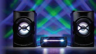 SHAKE-X30D Парти система • Tехнология Sound Pressure Horn за мощни баси • LDAC за висококачествено слушане през Bluetooth • DVD, CD, USB, смартфон; FM радио • DJ ефекти, LED осветяване • Караоке –микрофон вход х2 • Вход за китара, HDMI® HT-S40R 5.1 канален саундбар HT-SF150 2.1 канален саундбар MEX-N5300BT CD плейър с двоен Bluetooth • 600 W обща изходна мощност • Dolby Digital • Bluetooth, USB порт, HDMI® ARC , аналогов/оптичен вход • Елегантен дизайн, безжична връзка 169999 59999 9999 64999 19999 • Басрефлексен високоговорител • Dolby Digital• USB • HDMI® ARC • S-Force front surround • Лек и компактен дизайн • Съвместим с Android и iOS устройства • Фронтални AUX, USB входове • 3 x 2V изхода за предусилвател • Подсветка с избор на цвят • 10-лентов еквалайзер, RDS ВЪНШЕН МИКРОФОН В КОМПЛЕКТА ЗАЩИТА СРЕЩУ КРАЖБА СЛЕД РЕГИСТРАЦИЯ 2 ГОДИНИ 4 x 55W ДВОЕН BLUETOOTH SRS-XP500B Преносим високоговорител • X-Balanced говорители и фронтално разположени пищялки • Рейтинг IPX4 за водоустойчивост • До 20ч. издръжливост на батерията • Бързо зареждане • Зареждане на смартфон • Дръжка
