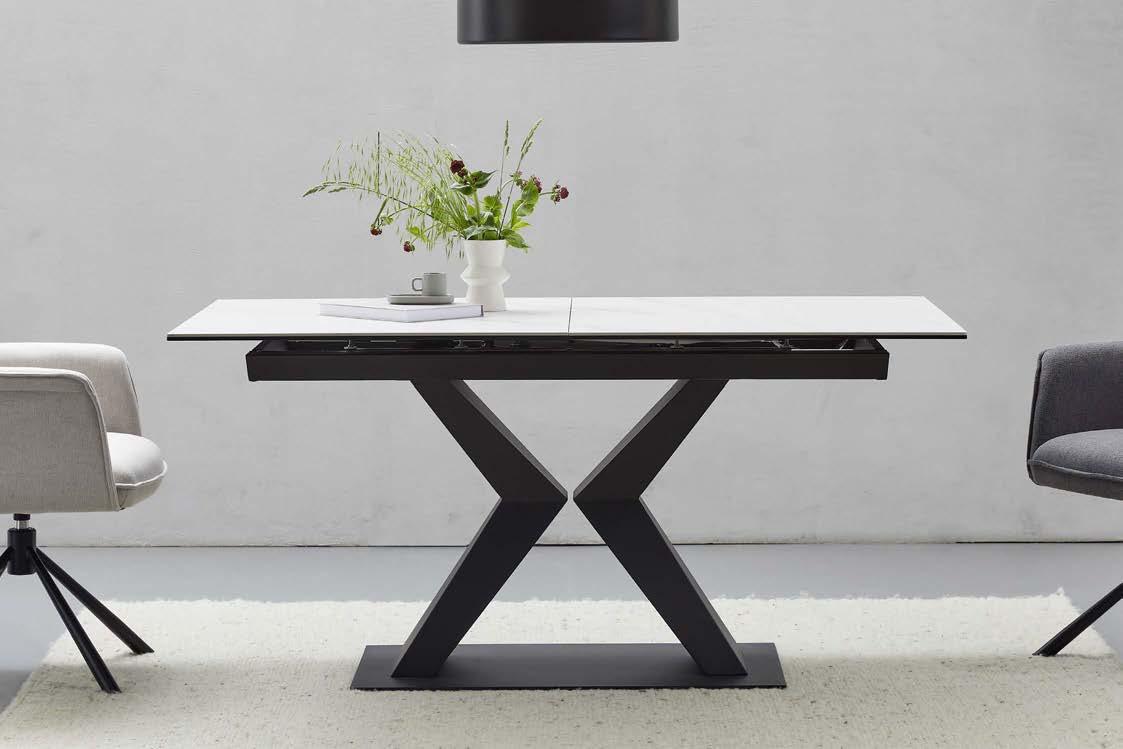 1: Разтегателна трапезна маса 160-210/90/76 см, плот от закалено стъкло с керамика черен цвят / станок в черен цвят 2349,- 1699,- ( 01453050010 )