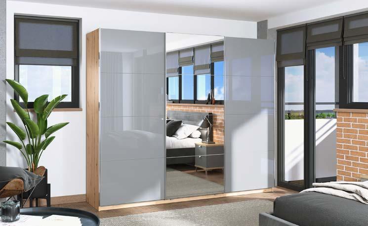 2: Легло** 204/215/98 см, за матрак 180/200 см 799,- 629,- ( 88354060004 / 88354060013 ); Легло** 184/215/98 см, за матрак 160/200 см 799,- 629,- ( 88354060005 / 88354060014 ); Легло** 164/215/98 см, за матрак 140/200 см 749,- 599,- ( 88354060006 / 88354060015 ); Легло** 124/215/98 см, за матрак 100/200 см 699,- 559,( 88354060007 / 88354060016 ); Нощно шкафче 65/41/52 см 299,- 239,- ( 88354060008 / 88354060017 ); Комод с 2 врати и 4 чекмеджета 165/41/88 см 999,- 799,( 88354060009 / 88354060018 ); Гардероб петкрил 266/64/220 см 1999,- 1599,- ( 88354060001 / 88354060010 ); Гардероб четирикрил 210/64/220 см 1799,- 1399,( 88354060002 / 88354060011 ); Гардероб трикрил 160/64/220 см 1499,- 1199,- ( 88354060003 / 88354060012 ) Предлага се в два основни цвята: светъл бор и графит. Акцентите са в дъб артисан. 999,2 КОМОД 799,20% СПЕСТЕТЕ 299,2 НОЩНО ШКАФЧЕ 239,20% СПЕСТЕТЕ 799,2 ЛЕГЛО** 160/200 СМ 629,21% СПЕСТЕТЕ ЕКСКЛУЗИВНО в Aiko XXXL 1: Модулна система Рондино В цвят пясъчен дъб и бял гланц. Гардероби с плъзгащи врати с широчина 170 см, 220 см и 270 см. Гардероби с отваряеми врати 4-крила с широчина 227 см, 5-крила - 250 см, Легла с тапицирана табла с леглова площ 140/200, 160/200 см, с 2 броя нощни шкафчета, 180/200 см, с или без ракла и 2 броя нощни шкафчета. Комоди с широчина 100 см и 170 см, с и без осветление. Допълнителни модули: бюро, стенна полица и ТВ шкаф Тапицирана табла Led осветление Бял гланц Тапицирана ракла LED осветление 1 МОДУЛНА СИСТЕМА РОНДИНО 20 % отстъпка за модулна програма Рондино Bla-Bla-Black Week