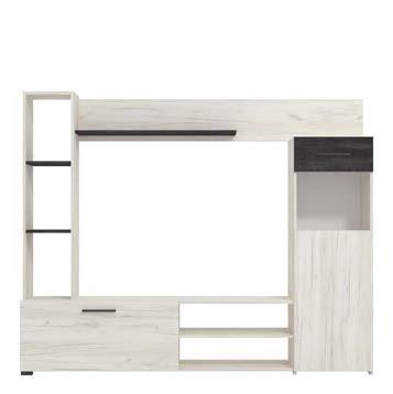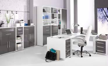 1: Офис система Систем предоставя възможност всеки сам да конфигурира желаната комбинация от етажерки с избор от 3 размера врати и 3 размера чекмджета, ролетна врата и различни приставки/органайзери за етажерки, стъклени врати, комод и висящи етажерки. Стандартна комбинация: Корпус Дъб сонома/Фронт Сив гланц. Възможни цветове за корпус: бял, светъл бук, бук, дъб сонома. Възможни цветове за лице: бял гланц, каменно сиво/бетон/, сив гланц 25 % отстъпка за Офис система Систем Week Bla-Bla-Black 20% отстъпка за Офис мебели