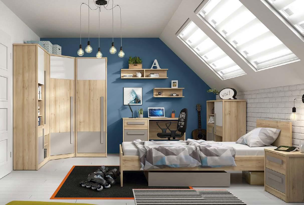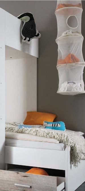 1: Модулна система Намек е със семпли модули в модерни цветове, които позволяват практично разположение на мебелите, така че да има достатъчно пространство за ежедневните дейности на най-малките членове на семейството: учене, игри и почивка. 20 % отстъпка за модулна система Намек 1 МОДУЛНА СИСТЕМА НАМЕК 2: Двуетажно легло** 269/115/180 см, две легла за матрак 90/200 см, гардероб с два рафта и лост, 1 чекмедже и вградена етажерка, ПДЧ, бяло/пясъчен дъб 1099,- 899,- ( 78861020001 ) 1099,2 ДВУЕТАЖНО ЛЕГЛО 899,200,СПЕСТЕТЕ 3: Mатрак Bodyflex Plus ядро от покет пружини обвити в слой полиуретанова пяна, височина 18 см 299,3 МАТРАК BODYFLEX 90/200 CM 239,20 % отстъпка за всички размери матраци Bodyflex Plus 599,4 MАТРАК ROZALIA 90/200 СМ 449,25 % отстъпка за всички размери матраци Rozalia 4: Матрак Rozalia ядро с база от 14 см еластична пяна, пласт 4 см мемори пяна от едната страна и пласт 4 см високоеластична пяна от другата страна. Калъф от висококачествен текстил с борд отстрани, височина 22 см Bla-Bla-Black Week