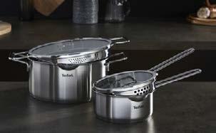 1: Сет тенджери 6 части изработен от неръждаема стомана Tefal Nordica с патентовани двойни дръжки. Съдържа две тенджери с различен размер и касерола с капак 259,- 179,- ( 56867020035 )