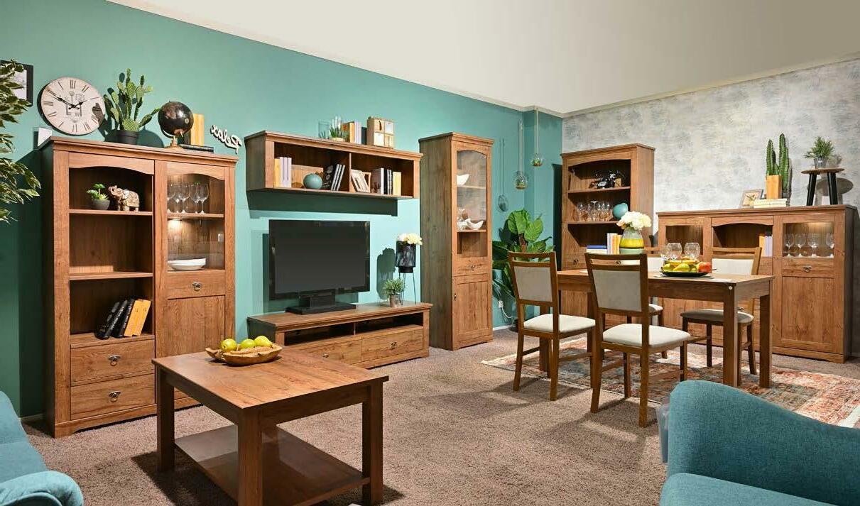 Патрас - функционална модулна система за дневна, издържана в класически стил. 1: Трапезен стол 44/51/94,5 см 599,- 465,- ( 08653031345 ) 2: Комод 153/44,5/129 см 599,- 465,- ( 08653031345 ) 3: Витрина 63/44,5/201 см 399,- 310,- ( 08653031346 ) 399,3 ВИТРИНА 310,22% СПЕСТЕТЕ 159,5 СТЕНЕН ШКАФ 124,22% СПЕСТЕТЕ 349,6 ТВ ШКАФ 272,22% СПЕСТЕТЕ 449,7 ШКАФ 350,22% СПЕСТЕТЕ 399,8 ТРАПЕЗНА МАСА 310,22% СПЕСТЕТЕ 8: Трапезна маса 140-180/80/77 см 399,- 310,- ( 08653050077 ) 9: Холна маса 60/100/50,5 см 199,- 155,- ( 08653060129 ) 22 % отстъпка за модулна система за дневна Патрас /по поръчка/МОДУЛНА СИСТЕМА ЗА ДНЕВНА ПАТРАС Класическа изтънченост с много възможности 499,4 ВИТРИНА 389,22% СПЕСТЕТЕ 4: Витрина 103/44,5/158,5 см 499,- 389,( 08653031347 ) 5: Стенен шкаф 153/35/39,5 см 159,- 124,( 08653031348 ) 6: Тв шкаф 153/44,5/48 см 349,- 272,- ( 08653031349 ) 7: Шкаф 93/44,5/201 см 449,- 350,- ( 08653031350 ) 599,2 КОМОД 465,22% СПЕСТЕТЕ 199,9 ХОЛНА МАСА 155,22% СПЕСТЕТЕ 199,1 ТРАПЕЗЕН СТОЛ 155,22% СПЕСТЕТЕ