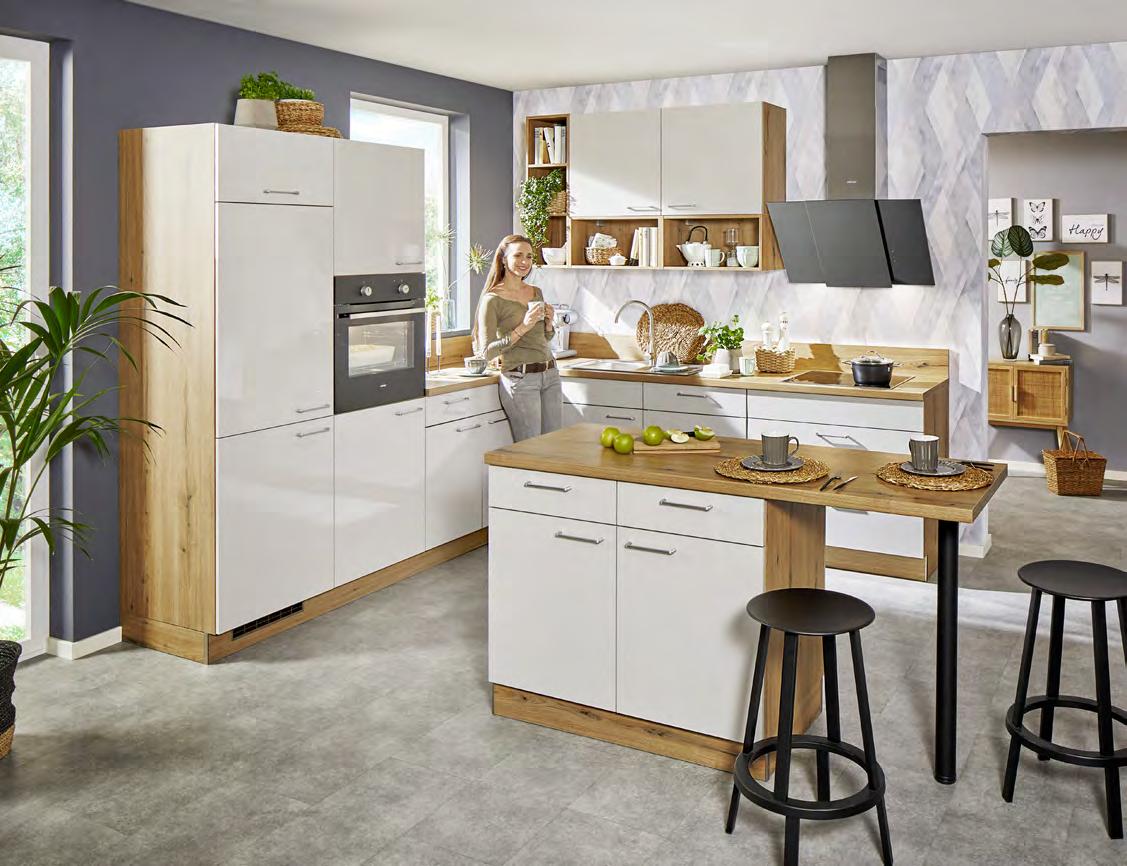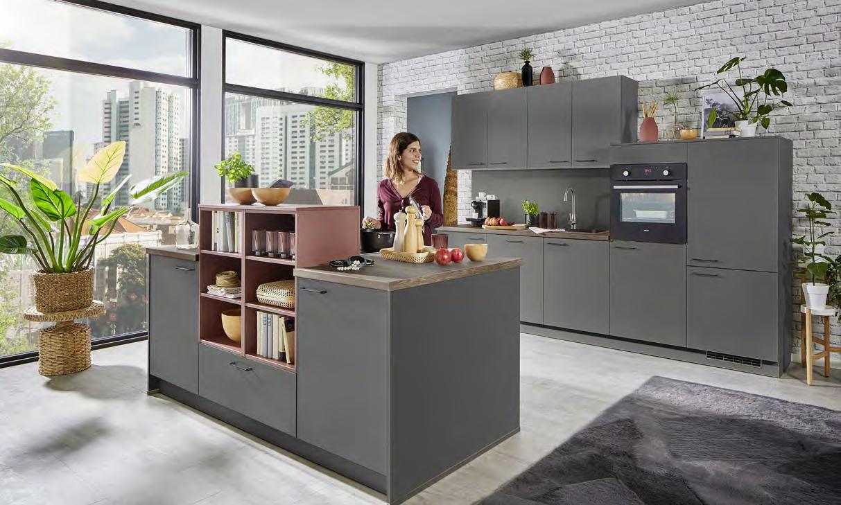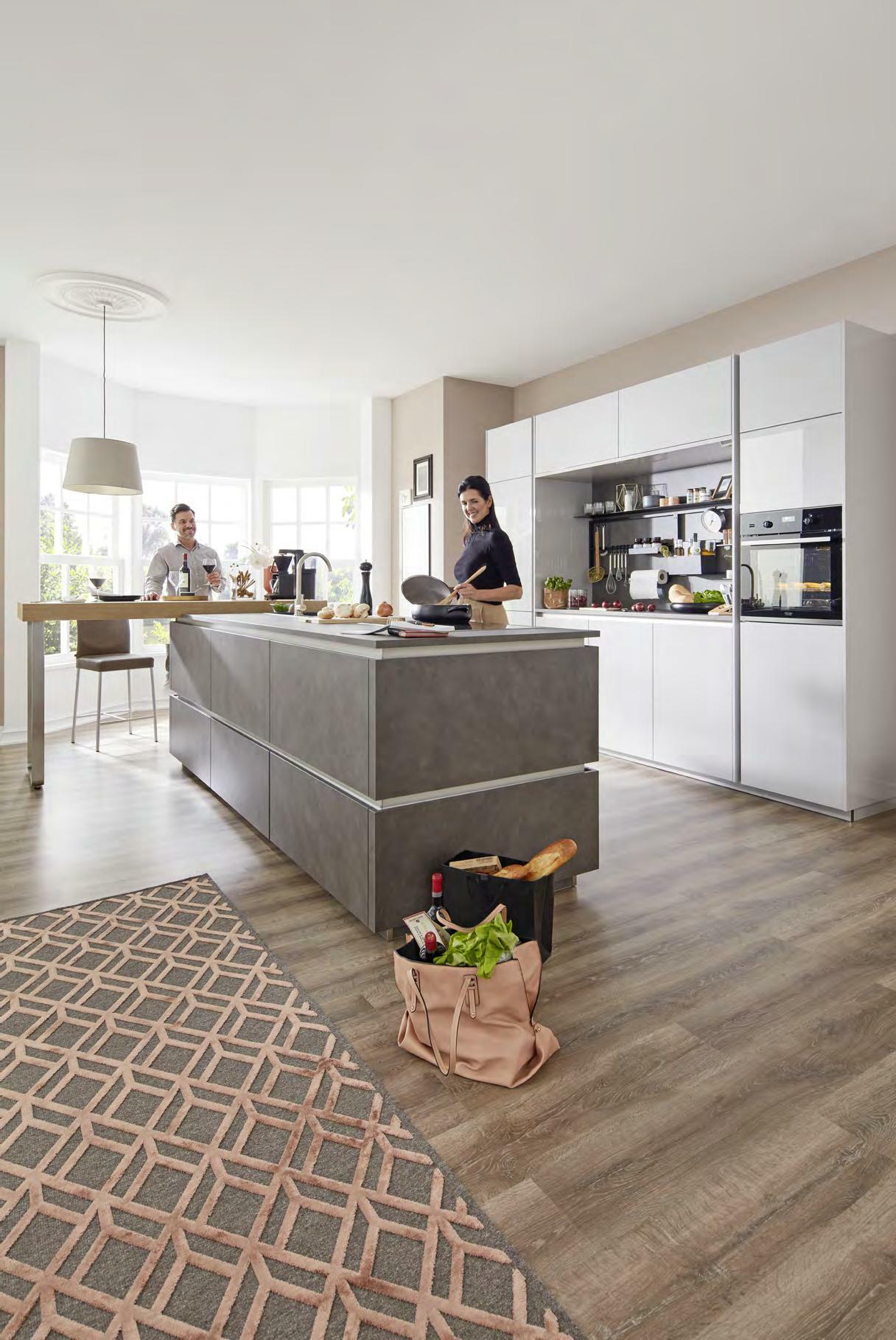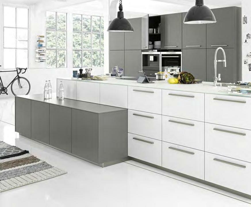 Silestone® Кварцов камък, отличаващ се с дизайн и иновативност. 93 % висококачествен кварц, смола и пигменти. Предлага се в над 80 цвята с различни повърхности - мат, релеф, гланц. Кухненски мивки Silestone INTEGRITY ® в над 25 цвята. Пълно интегриране на мивката и кухненския плот в едно цяло изделие. Камъкът Silestone® изисква минимална поддръжка, предлагайки визия и усещане за естествен материал, с висока устойчивост. DEKTON® ИЗДЪРЖА НА ВСИЧКО! Топлите съдове вече могат да се поставят директно върху плота ! Dekton ® смес от естествени минерали: Рафинирано стъкло, Подсилен порцелан, Чист кварц, със супер устойчива и ултра-компактна повърхност. Предлага се в над 66 цвята с различни повърхности супер гланц, гладък мат, релефен, Velvet. Материалът е устойчив на надраскване, огън, натиск, триене, петна, влага, агресивни химически продукти и екстремни температури. заотстъпкавсички Смесители и мивки за 15кухня%заотстъпкавсички кухни 30Welnova% отстъпка за 12камъкTехнически% КЪДЕТО ИМА ВСИЧКО 24 / 7 ShoppingOnlineONLINE aiko Eдин повече Online: XXXL Информация • 3 4 цвята за лице 7 ц вята за корпус • 20 варианта за кухненски плот • 32 варианта за дръжки Индивидуално проектиране Бяло и Сиво в модерна комбинация. Лица и корпуси с матов ефект. Плотове в декор Базалт. Изчистен стил и функционално разпределение. WELNOVA3415,- MOON ГР. 2 /AIKO ВАРИАНТ 255 СМ/ 2390,-1025,-СПЕСТЕТЕ