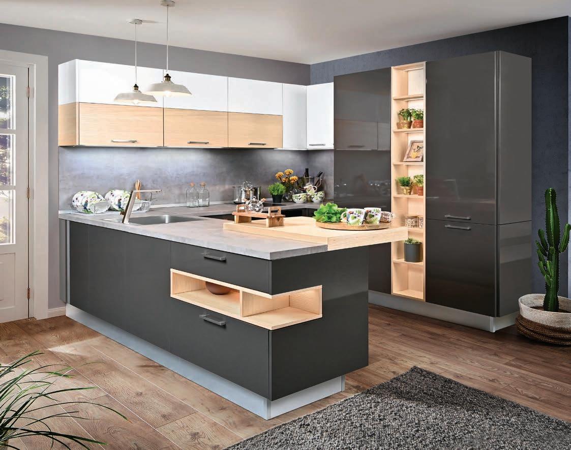 40 % отстъпка за всички Kухни по поръчка XXXL Информация •Над 100 цвята за лице •15 цвята за корпус •47 варианта за кухненски плот •78 варианта за дръжки 5072,DIETER KNOLL MANHATTAN ГР. 1 /AIKO ВАРИАНТ 255 СМ/ 3043,2029,СПЕСТЕТЕ Модерен шик, с изчистени линии и стилна комбинация от декори Oak Graphite Silver и Anthracite Grey. Плот в декор Cement Anthracite индивидуално проектиране Години ГАРAНЦИЯ За Вашата Dieter Knoll кухня XXXL Информация •Над 100 цвята за лице •15 цвята за корпус •47 варианта за кухненски плот •78 варианта за дръжки С корпусите Matrix 900 и Matrix Art 900 получавате 20% повече обем, в сравнение с корпуси 750 мм. 20% Повече обем Модерна класическа визия, същевременно семпла и декоративна. Врати с фрезована рамка и витрини с шпросни. Лаково покритие в светло син цвят Опал и плот Kiruna Birch. индивидуално проектиране 7013,DIETER KNOLL WINDSOR LACK ГР. 6 /AIKO ВАРИАНТ 255 СМ/ 4208,2805,СПЕСТЕТЕ