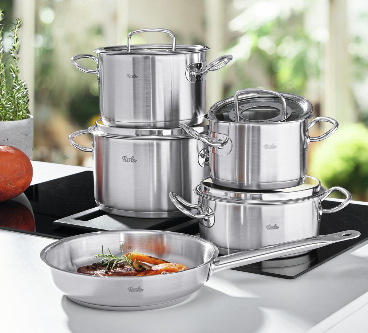 18 10 Неръждаема стомана Cromargan® патентованаTransTherm-Allherdboden:18/10конструкция на дъното Неръждаема стомана Cromargan® 18/10 Стъклен вграденнаизработенкапак,отустойчивотоплинастъклостермометър 1: Тава за готвене на пара Ø28 см, 5 л Има много възможности за използване на тази система за готвене. Може да се готви на пара, да се затопля, да поддържа топлината, да размразява или да се опушва храната, която приготвяте. 369,- 219,- ( 56867030004 ) Съд за печене със силиконов капак Мултифункционален съд за печене във фурна, който се превръща още в съд за готвене на пара и има възможност да се ползва като тиган. Материал: Неръждаема стомана Cromargan 18/10, стъкло, силиконово уплътнение – подходящо за миялна машина; съвместим с печене на фурна, устойчив на ръжда и киселини. Капакът (без термометър) е подходящ за готвене на фурна до 180°C. А силиконовото му уплътнение предотвратява изпускането на кондензиралата се вода извън съда. 329,- ( 56867030009 ) 2: Hexagon тиган 28 см, Висококачествено незалепващо покритие, подходящ за всички котлони, включително индукция, незалепващо покритие, защитено от повдигнатата лента с форма на пчелна пита.Материал: Cromargan® неръждаема стомана 18/10, капсуловано TransTherm дъно. Подходящ за миене в съдомиялна машина 159,- ( 56867010012 ) 229,2 HEXAGON ТИГАН 159,-30%СПЕСТЕТЕ незалепващо покриете „пчелна пита“ 18 39,99 3 ЧУГУНЕНА ТАВА С ДЪРВЕНА ПОСТАВКА 249937СПЕСТЕТЕ% 3: Чугунена тава с дървена поставка 30 см 24,99 ( 48267030057 ) акациячугун 499,1 СЪД ЗА ПЕЧЕНЕ СЪС СИЛИКОНОВ КАПАК 329,-34%СПЕСТЕТЕ 369,1 ТАВА ЗА ГОТВЕНЕ НА ПАРА 219,-150,-СПЕСТЕТЕ