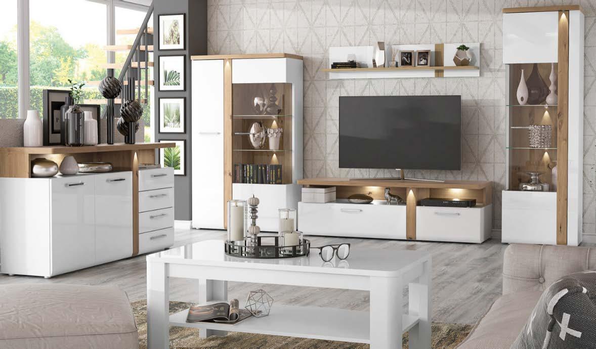 КЪДЕТО ИМА ВСИЧКО 749,ТВ ШКАФ С LED ОСВЕТЛЕНИЕ 163/55/51 СМ ( 67553030143 ) 545,699,КОМОД С LED ОСВЕТЛЕНИЕ 103,5/43/86 СМ ( 67553030139 ) 509,- 1099,КОМОД С LED ОСВЕТЛЕНИЕ 163/43/86 СМ ( 67553030140 ) 799,749,ВИТРИНА С LED ОСВЕТЛЕНИЕ 66,5/43/196 СМ ( 67553030142 ) 545,899,ДВОЙНА ВИТРИНА С LED ОСВЕТЛЕНИЕ 98/43/164 СМ ( 67553030141 ) 655,129,ПОЛИЦА 140/22/29,6 СМ ( 67553030144 ) 94,Mодулна програма за дневна Тулуза MDF/ПДЧ, декори бял и дъб артисан, акцентиращо Led осветление с топла светлина, витрини и стъклени рафтове. Декор дъб артисан във вътрешността на видимите елементи. над 10 000 Винаги изгодни предложения -27 % за модулна система Тулуза Нови вдъхновения за вашата дневна