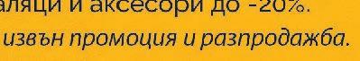 8| ЗА ДОМА КОНВЕКТОР ELDOM RH01W20W-W СТЕНЕН WI-FI УПРАВЛЕНИЕ • мощност:2000W • напрежение:230V~ • oтопляема площ: 16 -22м2 • 453x880x84 мм. • Wi-Fi • гаранция: 7г. /102768/ 29900лв. 11500лв. 20900лв. РАДИАТОР TESY CB 2512 E 01 V 2500W + ТОПЛОВЕНТИЛАТОР500W • отопляем обем:60-80м2 • отопляема площ: 24-32м2 • бройребра: 12 • защитасрещупрегряване • гаранция: 3г. /80683/ 2899лв. от 2599лв. ОДЕЯЛО ЕЛЕКТРИЧЕСКО • различни десени • ном. напрежение:230V/50Hz • ном. мощност:35- 70W • размер: 80х150 см. -25,99 лв. • 120 х 150 см. -28,99 лв. /86119,86118/ ВЕНТИЛАТОРНА ПЕЧКА TESY С КЛЮЧ HL213V • двестепени намощност:1000W/2000W • вентилация през лятото • регулируем термостат • защитасрещузамръзване • защитасрещупрегряване • гаранция: 2г. /83367/ 3390лв. 1339лв. К-Т ВЪЗГЛАВНИЦИ ЗА СЪН 2 БР. • 50x 70 см.,400 гр.; силиконова /88452/ от 2599лв. ОЛЕКОТЕНА ЗАВИВКА • 150 х 210 см. -25,99 лв. • 200х 210 см. -32,90 лв. • различни десени • 300 /75288,75289/гр. от 2169лв. НЕПРОМОКАЕМ ПРОТЕКТОР ЗА МАТРАК AGLIKA • 90х200 см. -21,69 лв., 140 х200 см. -25,29 лв. • 160 x200 см. -28,89 лв., 180 х200 см. -30,90 лв. •99303,99302//99304,99305,полиестер МАТРАК ONE SIDE COLORI • 82х 190 см. -159,00 лв. • 114 х 190 см. -203,00 лв. • 120 х 190 см. -217,00 лв. • пружинен пакет бонел с високаиздръжливост • рамка от иглолистна дървесина /102461,102462,102460/ от 15900лв. ТОП МАТРАК TMK EUCALYPTUS FRESH ROLL • размер: 82/190 см. -69,90 лв., 160/200 см. -125,00 лв. • профилирана пяна, масажиращ ефект • нежен микрофибър,обогатен с екстрактот евкалипт • /102453,102452/приятенаромат от 6990лв. от 2399лв. ------ www.alati.bg -----ОДЕЯЛО LAMA MOOD • размер: 150 х200 см. • цвят: сив, екрю • рециклиран ПЕ- ЕКО вълна с грижа за /104550,106549/природата КАМИНА ЗВЕЗДА 1 ЕКО • макс. топлиннамощност:8kW • размер: 48x39x73 см. • /99237/тегло:53кг. см73 4839смсм 39900лв. от 25500лв. ПОДОВ КОНВЕКТОР ЕЛДОМ 2KW • три степени нарегулиране-800/1200/2000W • метален корпус; защита от прегряване • цвят бял/черен •/80085,80086/гаранция: КОНВЕКТОР ПАНЕЛЕН TESY CN 031 200/250 EI CLOUD W • 2000W, отопляема площ 16 -24м2 -255,00 лв. • 2500W, отопляема площ 20-28м2 -275,00 лв. • с управление през Интернет • гаранция: 7г. /106482,106481/ гаранция:бял/черен3г.80086/ 2999лв. ПЕЧКА ВЕНТИЛАТОРНА TESY ЗА БАНЯ HL 243 VB • макс. мощност:2000W • терморегулатор • защитен термостат • защита против замръзване • площ на помещение: 12 м2 •/95620/влагоустойчива МИКРОФИБЪРЕН КОМПЛЕКТ • 90х220 см. -23,99 лв., 164 х220 см. -29,99 лв. • включва плик, чаршаф и калъфка • различни /90463,90464/десени КВАРЦОВА ПЕЧКА ELITE FQH-0456 • степени на отопление: 400/800W/1200W • автоматично изключване при падане/ накланяне • висока ефективности спестяване на ел.енергия • мощност:1200W • 230V/50Hz • /99363/дръжка 3090лв. 10900лв. ВЪЗГЛАВНИЦА ЕЛЕКТРИЧЕСКА • различни десени • ном. напрежение:230V/50Hz • ном. мощност:20/40W • размер: 44х50 см. /53511/