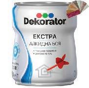 от 839лв. ЕМАЙЛЛАК 3 в 1 NEW METAL CLASSIC • разфасовка: 750 мл. • ръждопреобразувател, грунд и емайллак • различни цветове • разходнанорма–8- 12 м2/л. /97235,97236/ 1829лв. от 689лв. БОЯ ЕКСТРА АЛКИДНА ДЕКОРАТОР • разфасовка:650 мл. • подходяща за боядисване на градинска мебел, интериорни мебели, огради, металниконструкции, дървени или метални детайли • различни цветове • покривна способност: 100 - 120 мл./м2 /102311,102312,102313/ БОЯ ЛЕКО ЗА ВЛАЖНИ ПОМЕЩЕНИЯ • разфасовка:1 л.
