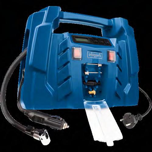Kompressor Airforce 5 Digitaldisplay, betreibbar mit 12 V und 230 V, inkl. 600-mm-Druckluftschlauch und 4 Düsen