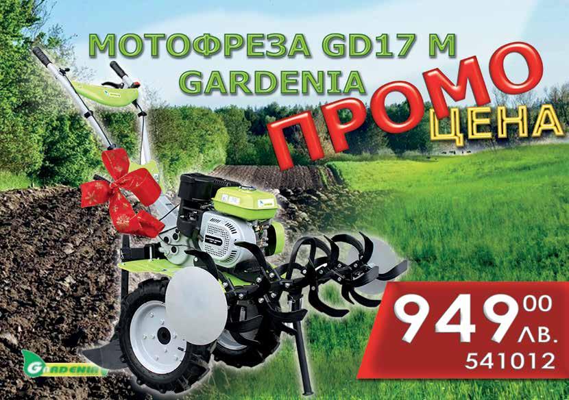 01.12. - 31.12.2022г. • Двигател: бензинов, едноцилиндров, четиритактов • Кубатура: 208 куб.см. • Мощност: 7.0 hp/ 5.23 kW • Обем на резервоара: 3.2 л • Обем на маслото: 0.600 л. • Дълж. на фрезоване: 800-1200 мм • Дълб. на фрезоване: 150-300 мм