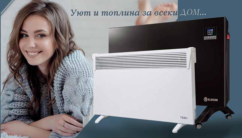 ПАНЕЛНИ КОНВЕКТОРИ • Mощност 2500 W • Възможност за използване в баня - защита от водни пръски IP24 • Оптимална конвекция • Регулируем термостат • Защита против замръзване • Защита от преобръщане • Защита от прегряване • Максимална мощност: 2400 W • Отопляема площ:16-20 кв.м. • Степени н аработа: 2 • Термостат • Студен вентилатор ВЕНТИЛАТОРНА ПЕЧКА HL 240 H TESY 5499лв. 537306 • Две степени на мощност: 1000 W / 2000 W • Цифров LED дисплей • Седм. програматор: 24 ч / 7 д • Електронен терморегулатор: 10 - 49 °C ВЕНТИЛАТОРНА ПЕЧКА 274 W PTC ERP 10499лв. 574061 593304 RH01F20W-B 593305 RH01F20W-S ПОДОВ КОНВЕКТОР GALANT • Mощност 2000 W • Ел.управление - Wi-Fi управление на всички функции чрез мобилното приложение ЕLDOM • Супер икономичен • Седмичен програматор • Отопляема площ: 16-22m2 20900 лв. • Мощност: 2000W • Степени: 2 • Вентилатор • Термостат • Терморегулатор • Защита от прегряване ВЕНТИЛАТОРНА ПЕЧКА TROY 2499 лв. 512989 593901 RH15NW 269.00 лв. 593902 RH20NW 289.00 лв. СТЕНЕН КОНВЕКТОР С WI-FI УПРАВЛЕНИЕ • Mощност 1500, 2000 W • Ел.управление - Wi-Fi управление на всички функции чрез мобилното приложение ЕLDOM • Отопляема площ: 12 - 18,16 - 22 m2
