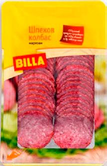 Луканка Търновска Оплетка Елит Мес 170 г предишна цена 4,59 лв. 299 -34% лв. 399 -27% Колбас Телешки, Хамбургски Нашенци 800 г предишна цена 5,49 лв. 279 -26% Шунка Шварцвалд слайс BILLA 100 г предишна цена 3,79 лв. 349 -22% Говежда саздърма BILLA 200 г предишна цена 4,49 лв. 499 -24% Панагюрска луканка слайс Молерите 150 г предишна цена 6,59 лв. 349 -41% Шунка Тандем 300 г предишна цена 5,99 лв. 399 -29% Кренвирши Винер Бони 400 г предишна цена 5,69 лв. 599 -31% Карловска луканка Бони 210 г предишна цена 8,79 лв. 299 -25% Мини сушеница Еко мес слайс 140 г предишна цена 3,99 В BILLA лв. 219 -18% Шпеков колбас слайс BILLA 100 г предишна цена 2,69 лв. 399 -27% Фует Екстра Noel 170 г предишна цена 5,49