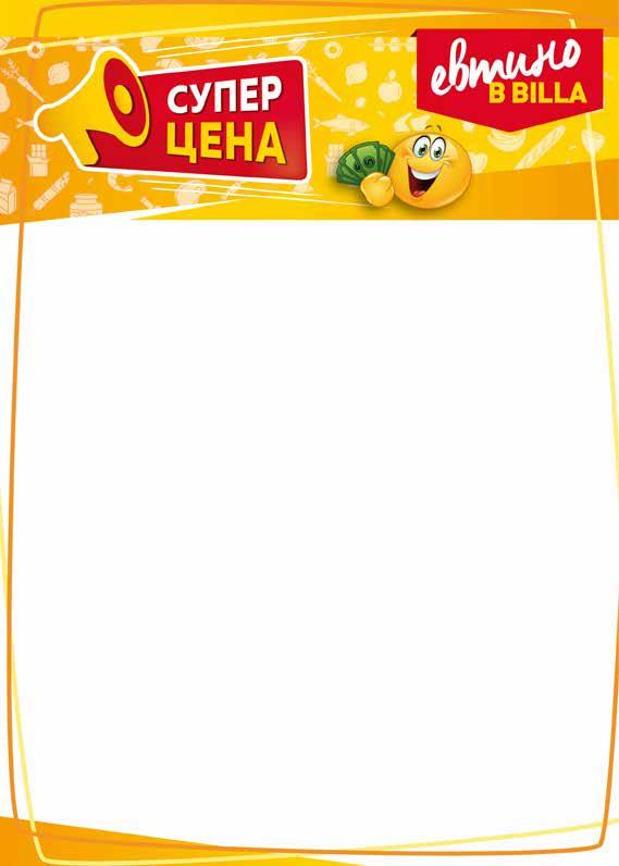 ПН 05.09. 06.09. ВТ 07.09. СРСупер СТАРТ лв.999 -28% КравеОтсиренесело За 1 кг предишна цена 13,99 лв.1899 -28% Уиски Johnnie Walker Red Label** 0,7 л предишна цена 26,49 лв.599 -42% EspressoМлянокафеTchibo 250 г предишнацена10,49 лв.029 -40% Мини фитнес багета От BILLA пекарна55г предишна цена 0,49 отсъставкикачествени * До 6 бр. на клиент на ден с BILLA Card от артикула, попадащ в акционната активност. При покупка над 6 бр., всеки следващ продукт се продава на регулярна цена. ** До 5 броя на клиент от артикула, попадащ в акционната активност. лв.395 СлънчогледовоолиоСъниБел* 1 л цена без BILLA Card 5,29 До 6 бр. на клиент До 5 бр. на клиент лв.059 -40% BILLAцаревицаСладкаГрадини 1 бр. предишна цена 0,99 Градините в гр. Петрич, с. Петърч лв.299 -25%Кайма от свинскодомашнамесо,СамиМ 500 г предишна цена 3,99 Промоционалните стоки се продават в количества, предназначени за домакинството. Всички оферти са валидни до изчерпване на количествата. BILLA не носи отговорност за допуснати печатни грешки. BILLA си запазва правото да променя цените. Повече на www.billa.bg С този знак се означават продукти, които могат да бъдат закупени еднократно на цена с отстъпка при едновременно маркиране на дигитален ваучер и BILLA Card в приложението BILLA App. Ваучерите са достъпни и на www.billa.bg. Ограничения в закупуваните количества и срок на валидност на офертата се посочват върху ваучера. Отстъпката получаваш веднага на каса. Повече в BILLA App и на www.billa.bg Продуктите, означени в брошурата със символа синя звезда не са налични в магазини BILLA: гр. София, бул. „Цариградско шосе“ №12, ул. „Обиколна“ №32, бул. „Цар Освободител“ №22, ул. „Раковски“ №116, пл. „Лъвов мост“ № 2, ул. „Пиротска“ №9, бул. „Княз Александър Дондуков Корсаков“ №11, ул. „Висарион Белински“ №2Б, ул. „Славянска“ №5, ул. „Пимен Зографски“ №38, ул. „Райко Алексиев“ №40, бул. „Ал.Стамболийски“ №247-В; гр. Пловдив, ул. „Райко Даскалов“ № 8, ул. „Черешово топче“ №2; гр. Бургас, ул. „Александровска“ № 58, ж.к. Изгрев, бл. 178, ул. „Слънце“ №30; гр. Варна, ул. „Димитър Икономов“ №36, ул. „Дубровник“ №46, бул. „Княз Борис I“ №99; гр. Русе, ул. „Неофит Бозвели“ №18, пл. „Свобода“ №7; гр. Стара Загора, ул. „Княз Борис“ №93, бул. „Цар Симеон Велики“ №105 А; гр. Хасково, пл. „Общински“ №3; гр. Шумен, бул. „Славянски“ №30; гр. Плевен, пл. „Свобода“ №25; гр. Благоевград, ул. „Крали Марко“ №1; гр. Кюстендил, ул. „Пауталия“ №10; гр. Велико Търново, ул. „Георги Измирлиев“ №13А; гр. Монтана, ул. „Акад. Иван Дуриданов“ №2 НАЦИОНАЛЕН ТЕЛЕФОН НА КЛИЕНТА 0700 120 10 СВЪРЖИ СЕ С НАС НА ЦЕНАТА НА ЕДИН ГРАДСКИ РАЗГОВОР