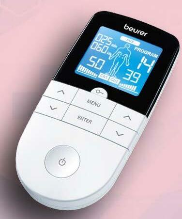 Терапия на болката (TENS). Мускулна стимулация (EMS). Релаксация и масаж. Индикатор за позициони ране на електрода.Включва 4 самозалепващи се гел електрода (45 x 45 mm). 2 отделно регулируеми канала. 64 предварително програмирани приложения. 6 програмируеми програми: честота, ширина на импул са, програмируемо време за включване/изключване. Регулируем интензитет. Инверсен LCD дисплей със синя подсветка.
