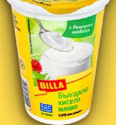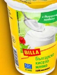 * Офертата е валидна от 06.10.2022 г. до 12.10.2022 г. Само с BILLA Card. Офертата не се прилага за продукти от седмични акции (червени цени) и други стоки с намалени цени, продукти с марка Clever, както и за артикули с етикет „Сега в BILLA“. Отстъпката получаваш веднага на каса. Изображенията са илюстративни. -25% Навсичкисладоледи смаркаFAMILIA, ALOMA,NIRVANA, GALAXY,HITиNUII* СПЕЦИАЛНАОФЕРТА В BILLA лв.125 -24% Кисело мляко 4,5% Верея 400 г предишна цена 1,65 лв.199Продукт за мазане Tommi 500 г цена без BILLA Card 2,99 лв.075Млечен бургер с мляко и мед Eti 35 г цена без BILLA Card 1,05 лв.279 -22% Прясно мляко 3,6% Маджаров 1 л предишна цена 3,59 лв.289 -25% Заквасена сметана Балкан 400 г предишна цена 3,89 лв.139 -30% Майонеза провансалска 67% Жирновъ 200 г предишна цена 1,99 лв.239 -38% Руска салата Шарена градина 400 г предишна цена 3,89 лв.329 -21% Кварк Zero Exquisa 400 г предишна цена 4,19 лв.109 -21% Айрян Балкан 500 г предишна цена 1,39 лв.399 -40% Сметана за готвене Meggle 500 мл предишна цена 6,69