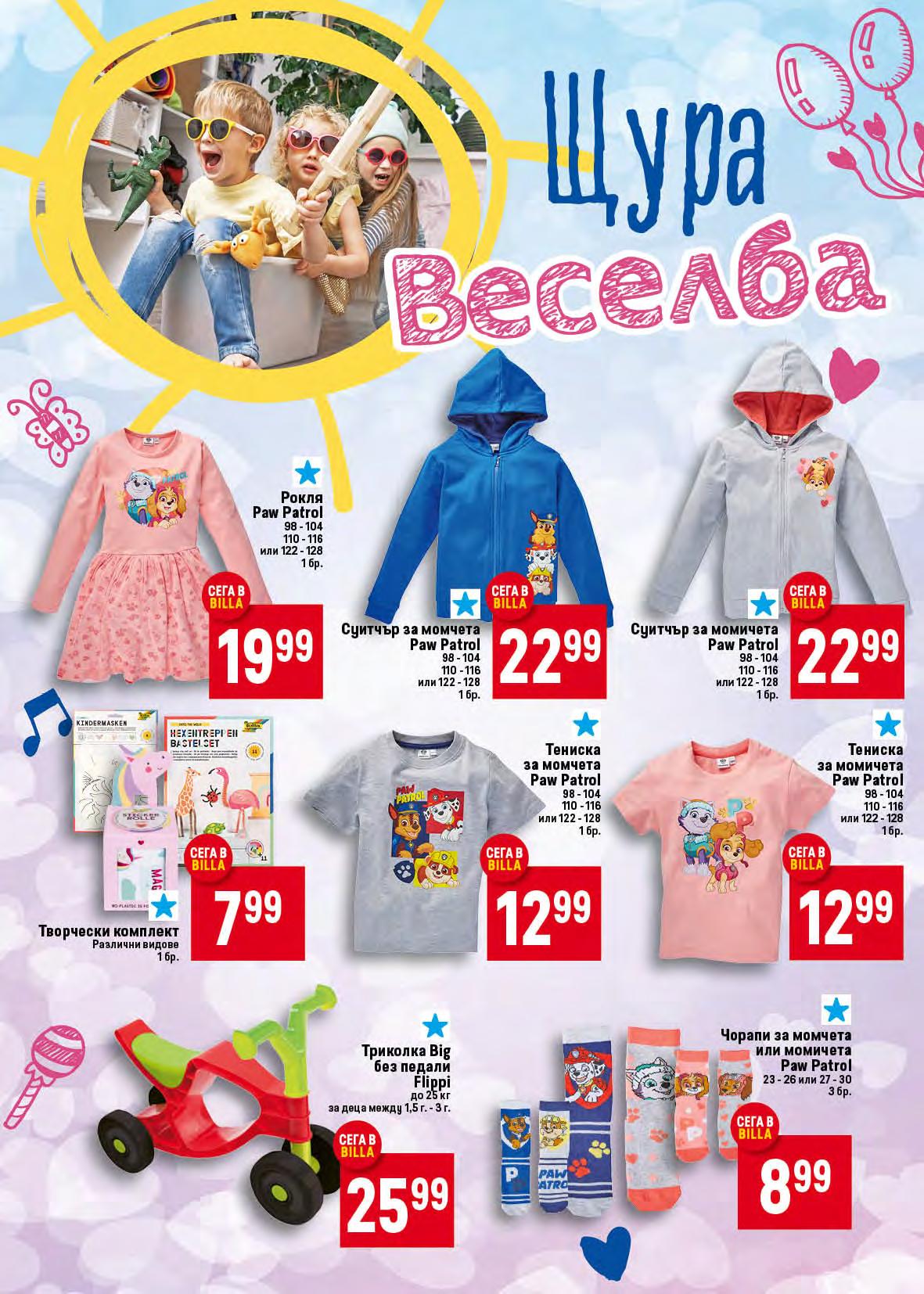 за сем СУПЕР О ЕРТИ бюд СУПЕР ЦЕНА 899999 Цяло пиле La Provincia За 1 кг СУПЕР ЦЕНА - 42% 399699 Краве масло Deutsche Markenbutter 250 г СУПЕР ЦЕНА -23% 399 5 19 Прясно мляко 3,7% Olympus 1,5 л СУПЕР ЦЕНА - 44% 089159 Макарони Кръстев 400 г СУПЕР ЦЕНА - 50% 084169 Баничка със сирене или със сирене и спанак От BILLA пекарна 125 г от качествени съставки СУПЕР ЦЕНА - 37% 175279 Гъби печурки 250 г СУПЕР ЦЕНА -25% 149199 Кромид лук За 1 кг МУ ТИ ПАК 1+1 6491298 Тракийска луканка Еко Мес 230 г Цена за 1 бр. 6,49 лв. Цена за 2 бр. без отстъпка 12,98 лв. + СУПЕР ЦЕНА - 31% 69910 19 Кашкавал от краве мляко Milki Dream 400 г СУПЕР ЦЕНА -22% 349 4 49 Кайма свинска МК Свиленград 460 г