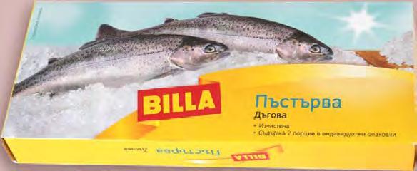 Рибен продукт от сьомга или от есетрови риби 110 г Посочен е ен са б арс е а с чен С. СУПЕР ЦЕНА -23% 9991299 Мерлуза За 1 кг 649 -27% 899 Пъстърва чистена замразена BILLA 500 г 4 99 - 18% 609 Мариновани шпроти Starfish 300 г 369 - 31% 539 Топчета за супа замразени Сами М 300 г