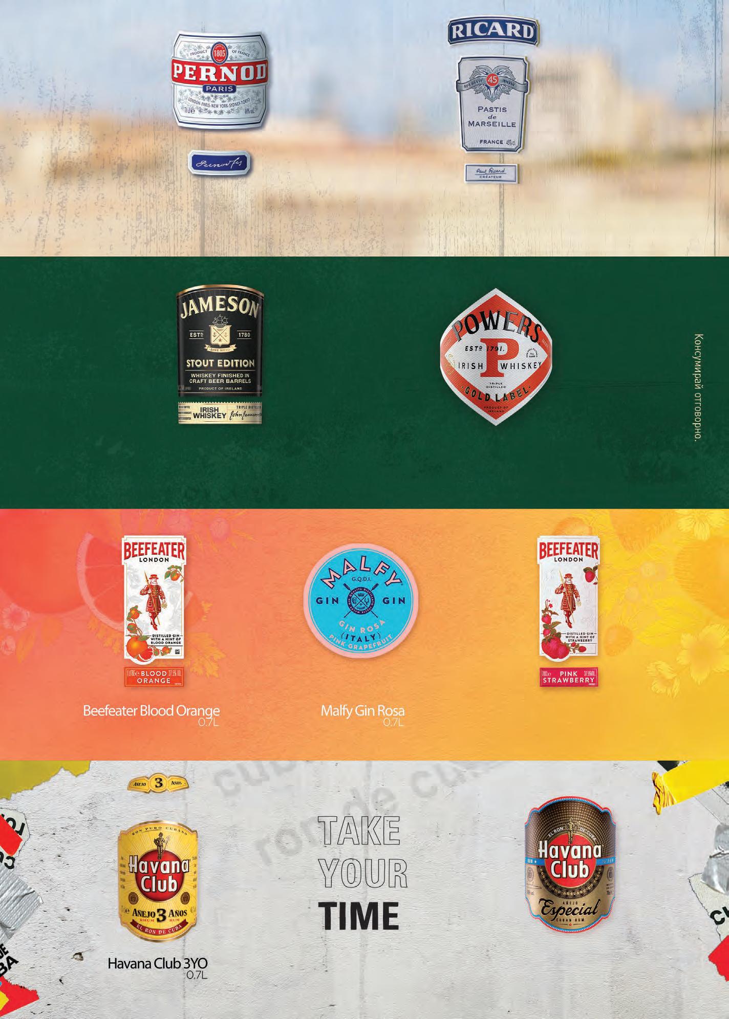 лв.3099 -17% Уиски Jameson Stout Edition 0,7 л предишна цена 37,49 лв.2799 Уиски Powers 0,7 л предишна цена 32,49 лв.2199 Ром Havana Club Anejo Especial 0,7 л предишна цена 25,39 лв.2299 Анасонова напитка Pernod 0,7 л предишна цена 26,49 лв.2199 -15% Анасонова напитка Pastis Ricard 0,7 л предишна цена 25,99 лв.2099 -17% Джин Beefeater Pink 0,7 л предишна цена 25,49