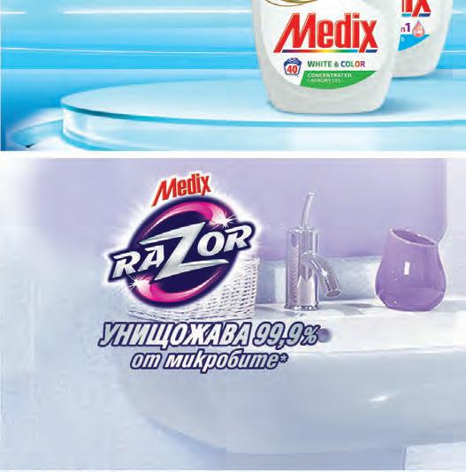 1299 СЕГА В BILLA лв. Гел за пране Medix 6 Action White&Color или Color 2in1 40 пранета 359 СЕГА В BILLA лв. Течен сапун Medix Botanical помпа 800 мл лв. 599 -24% Омекотител Medix Alvina 74 пранета предишна цена 7,89 -25% НА ВСИЧКИ ПРОДУКТИ С МАРКА MEDIX RAZOR лв. 139 -22% Препарат за съдове Medix Max Power Gel 450 мл Различни видове предишна цена 1,79 лв. 289 -22% Препарат за съдове Fairy 450 мл Различни видове предишна цена 3,75 лв.2599 -30% Капсули за съдомиялна Fairy Platinum 45 бр. в опаковка предишна цена 37,49 -25% НА ВСИЧКИ ПРОДУКТИ С МАРКА PANTENE 1099 СЕГА В BILLA лв. Бебешки мокри кърпички Pampers 4 x 52 бр. в пакет 999 СЕГА В BILLA лв. Гел или прах за пране Ariel 20 пранета или капсули за пране Ariel Pods 14 бр. 1 опаковка 449 СЕГА В BILLA лв. Омекотител Lenor Spring Awakening 33 пранета 1 бр. 799 СЕГА В BILLA лв. Шампоан против пърхот Head& Shoulders 360 мл Различни видове 3399 СЕГА В BILLA лв. Бебешки гащички или пелени Pampers Giant Pack Различни размери 1 опаковка