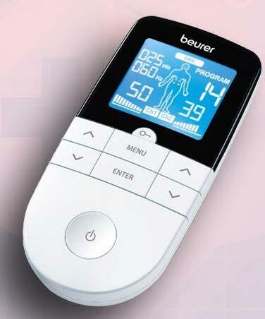 Терапия на болката (TENS). Мускулна стимулация (EMS). Релаксация и масаж. Индикатор за позициони ране на електрода.Включва 4 самозалепващи се гел електрода (45 x 45 mm). 2 отделно регулируеми канала. 64 предварително програмирани приложения. 6 програмируеми програми: честота, ширина на импул са, програмируемо време за включване/изключване. Регулируем интензитет. Инверсен LCD дисплей със синя подсветка.