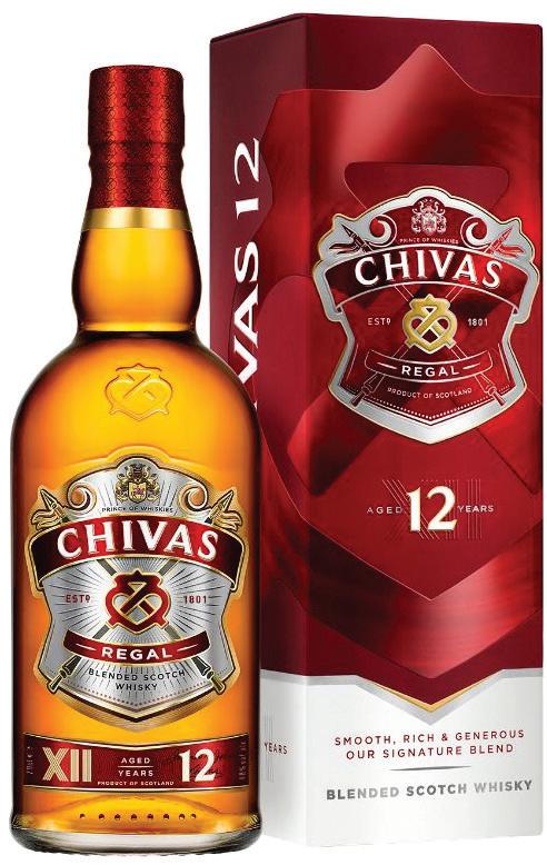 Мекият му до съвършенство вкус събира в себе си емблематични за Шотландия съставки. Малц от Стра тайла, зърнен дестилат от Стратклайд, див пирен и свежи плодове от региона Спейсайд се сливат във всяка капка Chivas 12, за да го превърнат в изключи телно изживяване. Уиски с вдъхновяващ аромат на билки, див пирен, мед и свежи плодове. Мек и богат вкус на мед и