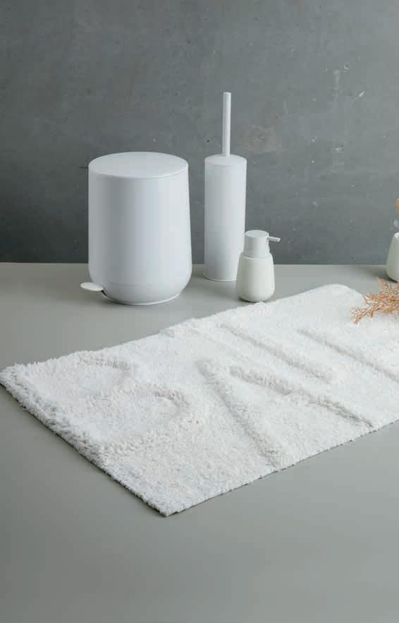 1) FORSVIK ПОСТЕЛКА ЗА БАНЯ 100% памук. С латексов гръб против хлъзгане. 50x80 см 32,99 лв 2) OXIE КОШ С ПЕДАЛ Пластмаса. Ø23 x В28 см 3) EKBY ДИСПЕНСЪР ЗА САПУН Пластмаса/керамика. Ø8 x В15 см 14,99 лв