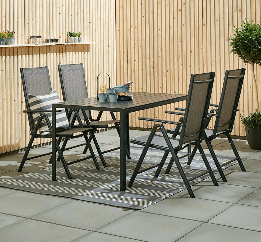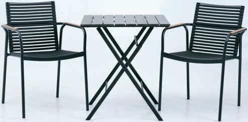 JERSORE + MELLBY ГРАДИНСКИ МЕБЕЛИ Маса: Алуминий и изкуствена дървесина. Ш80 x Д140 x В74 см. Стол: Алуминий и текстилин. 7 позиции. Сгъваем.