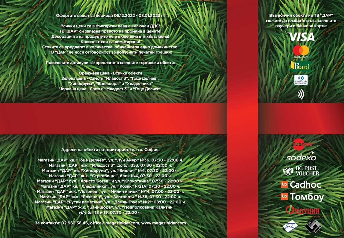 Избрани продукти с марка “PNG” на специални цени за периода 05.12.2022 - 08.01.2023 г. Избрани видове посуда с маркa “Metalac” Provansa на специални цени за периода 05.12.2022 - 08.01.2023 г. Избрани детски играчки на специални цени за периода 05.12.2022 - 08.01.2023 г. Избрани продукти с маркa “Bergner” на специални цени за периода 05.12.2022 - 08.01.2023 г. -40% детски халати декоративни възглавници отстъпка покривки за маса хавлиени кърпи