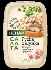 Orange лв|бр 2.49 1.99 -20% Салата “Fresh&Cool” Зеле и моркови 300 г Red лв|бр 400 г 5.29 4.19 -21% Салата “Веселина” Кьопоолу /400 г, Насипна/ лв|бр 3.19 2.49 -22% Салата “Vernada” Хумус Натурален 250 г Green лв|бр 400 г 6.49 4.49 -31% Салата “Кенар” Руска с шунка /400 г, Насипна/ Orange лв|бр 500 г 7.69 6.29 -18% Салата “Денито” Млечна /500 г, Насипна/ Green лв|бр 550 г 11.99 8.99 -25% Салата “Олинеза” Павлак /550 г, Насипна/ Red лв|кг Насипна 11.49 8.90 -23% Red лв|кг Насипна 11.90 7.69 -35% Red лв|кг Насипна 13.9 9.99 -28% Red лв|кг Насипна 19.90 13.90 -30%