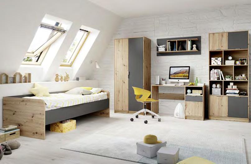 • материал: ПДЧ • цвят: дъб артисан + сиво • обков: