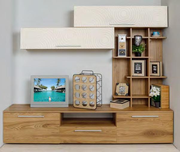 БРОШУРА, ВАЛИДНА OТ 01.02.2023 ДО 28.02.2023 г 3 пазарувайте и online на www.enikom-m.com 1 2 3 4 5 6 МОДУЛНО ОБЗАВЕЖДАНЕ ЗА ДНЕВНА GALA 0101300000669 • материал: MDF + ПДЧ + Стъкло • цвят: орех пасифик + бежов гланц 1 Витрина V61-2KS1F: Ш61 х Д41 х В194 700 лв. 546 лв. 2 Шкаф VK35-1KS: Ш35 х Д30 х В115 318 лв. 248 лв. 3 Шкаф VK35-1K: Ш35 х Д30 х В115 245 лв. 191 лв. 4 Маса KLS: Ш117 х Д60 х В47 556 лв. 434 лв. 5 Полица VP135:Ш135 х Д35 х В21 164 лв. 128 лв. 6 ТВ модул TV220-2K4F: Ш220 х Д46 х В48 847 лв. 661 лв. -22% СЕГА С ЗА ВСИЧКИ МОДУЛИ 754 лв. -18% 919 лв. 975 лв. -18% 1189 лв. СЕКЦИЯ MITO 010300000689 • Материал: ПДЧ + МДФ • Цвят: орех Starwood + крем • Размери: Ш240 х Д45 х В191 см СЕКЦИЯ BLADE 010300000607 • Материал: ПДЧ + МДФ + Стъкло • Цвят: Черен • Размери: Ш280 х Д46 х В195 см 491 лв. -20% 614 лв. СКРИН 2358 лв. -20% 2948 лв. ОБЗАВЕЖДАНЕ ЗА СПАЛНЯ ОБЗАВЕЖДАНЕ ЗА СПАЛНЯ RONDA 140/200 0103600000922 • Материал: ПДЧ+MDF • Цвят: черен гланц + brandy castello oak + антрацит 1 Гардероб: Ш 218 х Д53 х В 210 2 Легло с чекмеджета : Ш 168 х Д211 х В96 3 Нощно шкафче: Ш 60 х Д30 х В36 4 СКРИН RONDA 0100300000416 : Ш 130 Х Д48 Х В66 614 лв. 491 лв. 1 2 3 4 ВСИЧКИ 19 МОДУЛА ВИЖТЕ НА САЙТА 1 1 9 1 1 2 3 5 6 7 7 4 -22% СЕГА С ЗА ВСИЧКИ МОДУЛИ ПЛАВНО ЗАТВАРЯНЕ 10 11 8 10 11 12 МОДУЛНО ОБЗАВЕЖДАНЕ ЗА СПАЛНЯ BROOKLYN • материал: ПДЧ 18 мм + метал • цвят: меден дъб + черно 1 Гардероб M3: Ш50 х Д62 х В204 342 лв. 267 лв. 2 Гардероб M4: Ш100 х Д62 х В204 729 лв. 569 лв. 3 Легло за матрак 160/200 М8: Ш165 х Д205 х В95 483 лв. 377 лв. 4 Нощно шкафче М9: Ш50 х Д35 х В45 314 лв. 245 лв. 5 Надстройка за нощно шкафче с рафт и LED осветление М12: Ш50 х Д150 х В49 108 лв. 84 лв. 6 Скрин M14: Ш135 х Д45 х В77 654 лв. 510 лв. 7 Рафт M11: Ш165 х Д15 х В3,6 98 лв. 76 лв. 8 Гардероб M1: Ш165 х Д62 х В204 1437 лв. 1121 лв. 9 Гардероб M5: Ш83,5 х Д62 х В204 610 лв. 476 лв. 10 Легло за матрак 160/200 М7: Ш165 х Д209,5 х В95 770 лв. 601 лв. 11 Нощно шкафче M10: Ш50 х Д35 х В45 193 лв. 151 лв. 12 Скрин M17: Ш50 х Д46 х В115 472 лв. 368 лв. МОДУЛНО ОБЗАВЕЖДАНЕ ЗА ДНЕВНА VIDA 0101300000473 • материал: МДФ + ПДЧ + стъкло • цвят: дъб пацифик + бяло 1 5 2 4 3 1 Витрина висока V1S Ш64 х Д40 х В195 662 лв. 516 лв. 2 Комод K23 Ш180 х Д47 х В78 812 лв. 633 лв. 3 Маса KLS Ш111 х Д60 х В43 388 лв. 303 лв. 4 Полица VPS Ш140 х Д22 х В32 154 лв. 120 лв. 5 ТВ Шкаф TV Ш180 х Д47 х В58 654 лв. 510 лв. -22% СЕГА С ЗА ВСИЧКИ МОДУЛИ UV-ЛАК ПЛАВНО ЗАТВАРЯНЕ ВЪЗМОЖНОСТ ЗА ИЗБОР НА ЦВЯТ НА ПРОМО ЦЕНА ХОЛНА ГАРНИТУРА LINEA 0101800001258 • материал: дамаска • цвят: син • размери: Ш255 х Д165 х В83 • функция сън и ракла • размер на леглото: Ш165 х Д205 1599 лв. -20% 1999 лв. ЛЯВА И ДЯСНА ПОСОКА ПРОИЗВЕДЕНО ВСЪРБИЯ