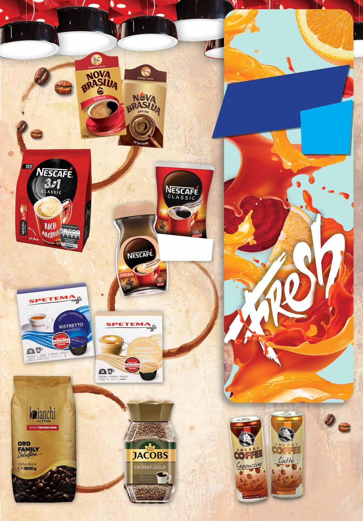 2.35 -28% 1 69 лв|бр 8.19 -39% 4 99 лв|пакет 99 лв|бр 24.99 -24% 18 9.99 -35% 6 49 лв|бр 7.49 -42% 4 29 лв|бр 99 лв|бр 20.99 -42% 11 1.59 -21% 1 25 лв|бр Разтворимо кафе NESCAFE различни видове 100 г Разтворимо кафе JACOBS Cronat Gold 200 г Кафе капсули SPETEMA различни видове 16 бр *съвместими със система DOLCE GUSTO Разтворимо кафе NESCAFE 3in1 Classic 20 бр х 16,5 г пакет Напитка COFFEE ENERGY различни видове кен, 250 мл портокал и цвекло Фреш портокал и цвекло с отстъпка -18% *предложението е валидно за магазините със сини цени Кафе на зърна BIANCHI Оrо Family Selection 1 кг Мляно кафе NOVA BRAZILIA класик; джезве 100 г 13ТВ „Фантастико” не носи отговорност за допуснати печатни грешки. Количествата са лимитирани! Предложенията са валидни до сряда 22.00ч. на 05.10.2022 г.