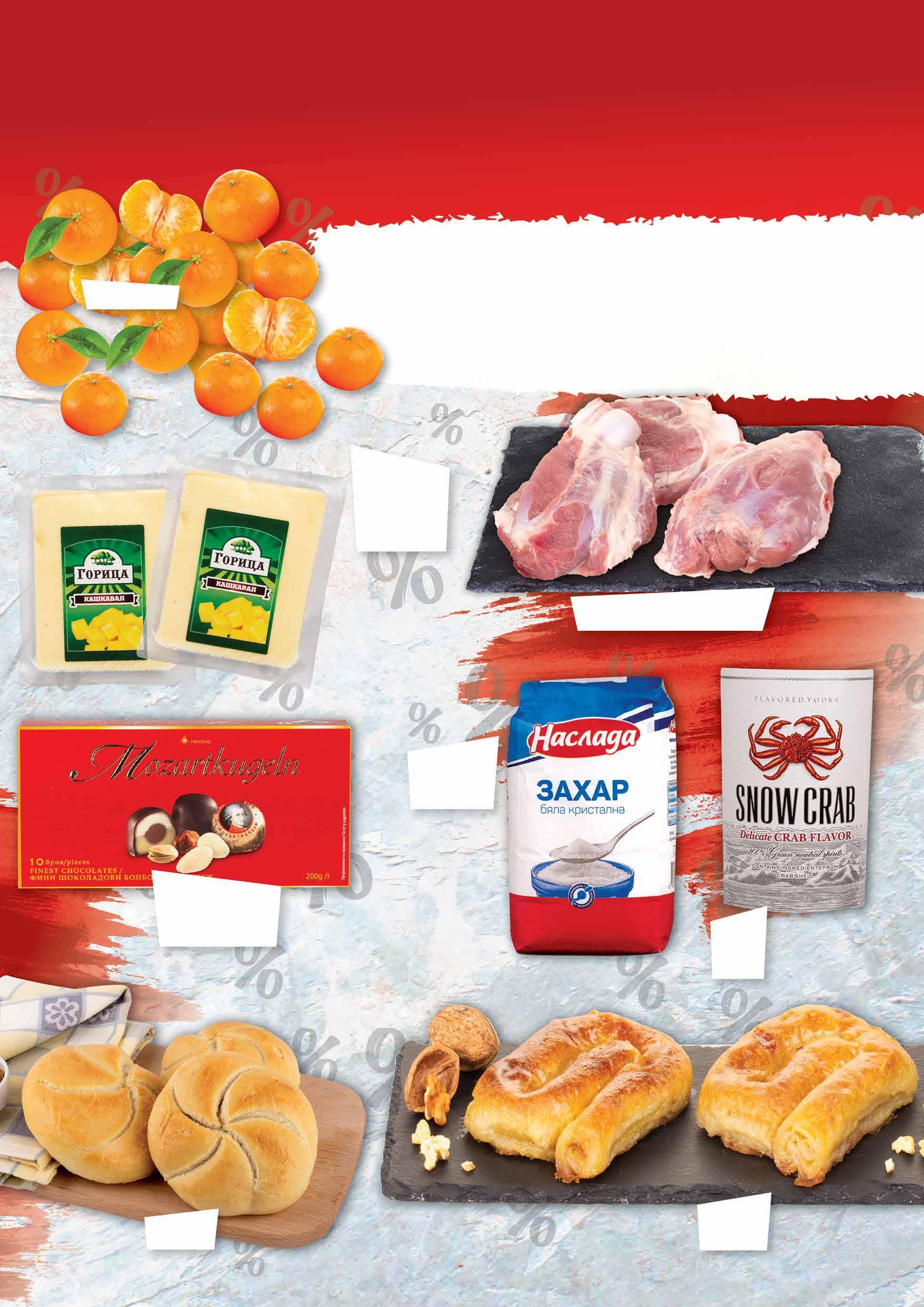 2.49 -40% 1 49 лв|кг 7.99 -50% 3 99 лв|бр 19.99 -52% 9 59 лв|бр 10.99 -36% 6 99 лв|кг 2.69 -8% 2 45 лв|бр 98 лв|2 бр 25.96 -50% 12 0.29 -58% 0 12 лв|бр 2.19 -47% 1 15 лв|бр гр. Перник, ж.к. „Изток”, ул. „Юрий Гагарин“ 52 Офертите сa валидни за супермаркети Фантастико: гр. Кюстендил, ул. ”Цар Освободител” 231 гр. София, бул. ”Сливница” №65 гр. Ботевград, ул. „Витоша“ 1А Свински джолан без кост насипен от щандова витрина Кристална захар НАСЛАДА 1 кг Кашкавал от краве мляко ГОРИЦА вакуум, 2 бр х 400 г Водка SNOW CRAB 700 мл Бял земел 60 г Бонбони шоколадови MOZARTKUGELN 200 г Саралия КАЛИНА 130 г Мандарини Предложения за периода от 19.01.2023 г до 22.00 ч на 25.01.2023 г важи само и единствено за супермаркети Фантастико - гр. Перник, гр. Ботевград, гр. Кюстендил и гр. София на бул. “Сливница” №65. Продуктите се продават в количества, обичайни за едно домакинство. Декорацията към продуктите не е включена в тяхната цена. ТВ „Фантастико“си запазва правото на промяна в цените. ТВ „Фантастико” не носи отговорност за допуснати печатни грешки. Количествата са лимитирани!