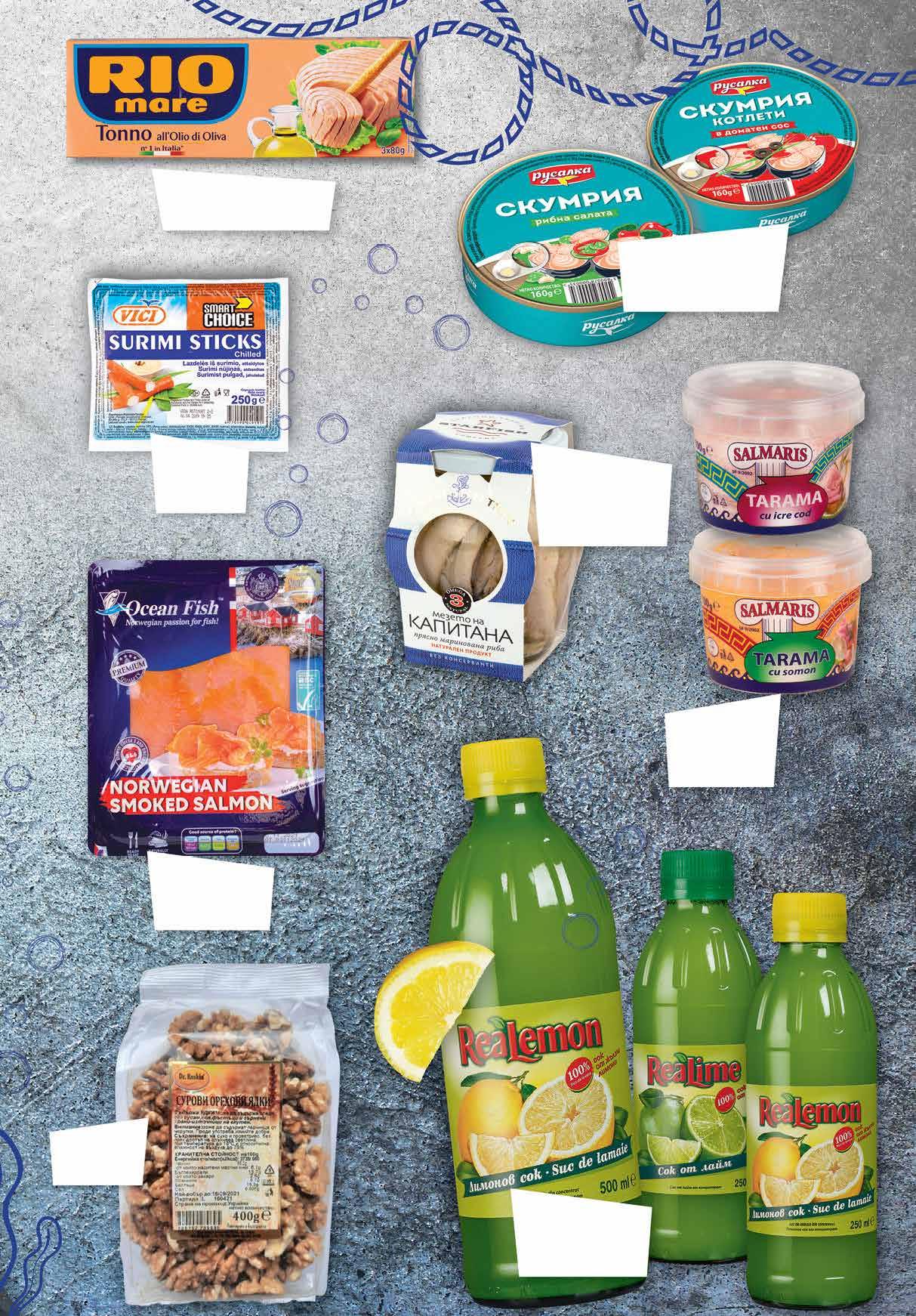 6.99 -28% 4 99 лв|бр 9.49 -26% 6 99 лв|бр 2.19 -36% 1 39 лв|бр 2.19 -27% 1 59 лв|бр 13.99 -28% 9 99 лв|бр 12.99 -26% 9 49 лв|бр 4.99 -24% 3 79 лв|бр 4.99 -32% 3 39 лв|бр 500 мл 2.99 -33% 1 99 лв|бр 250 мл Мариновани рибни специалитети STARFISH различни видове 300 г Скумрия в доматен сос РУСАЛКА различни видове 160 г; Рибна салата РУСАЛКА 160 г Сьомга филе OCEAN FISH пушена 100 г Рулца от сурими VICI охладени 250 г Лимонов сок REALEMON лимон, лайм 250 мл; лимон 500 мл Разбит хайвер SALMARIS треска; треска и пушена сьомга 100 г Риба тон филе RIO MARE в маслиново масло 3 бр х 80 г Суров орех Dr. KESKIN 400 г 3 ТВ „Фантастико” не носи отговорност за допуснати печатни грешки. Количествата са лимитирани! Предложенията са валидни до сряда 22.00ч. на 07.12.2022 г.