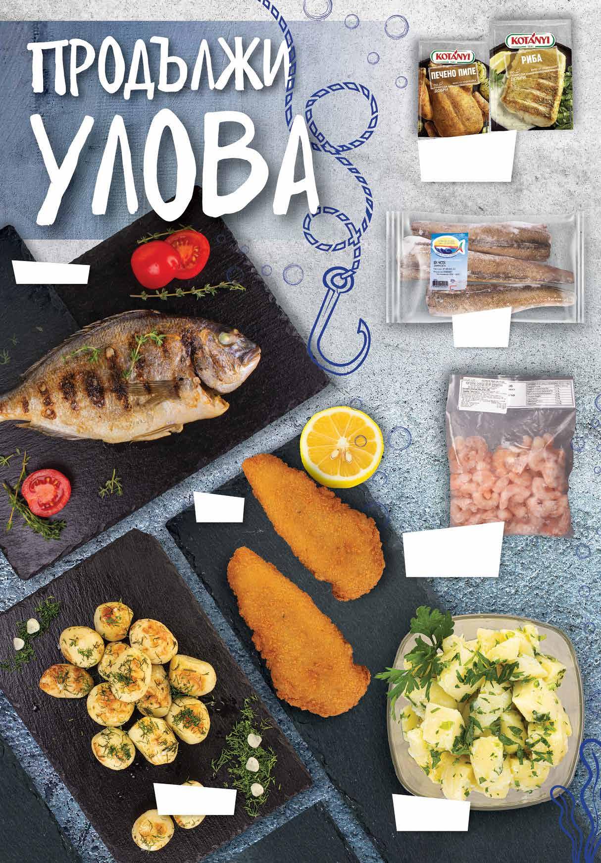 9.39 -25% 6 99 лв|кг 1.99 -25% 1 49 лв|бр 9.99 -30% 6 99 лв|кг 3.19 -31% 2 19 лв|бр 8.99 -27% 6 49 лв|кг 99 лв|бр 14.99 -26% 10 99 лв|кг 37.99 -28% 26 Хек чистен замразен Вастон Коктейлни, бланширани скариди размер 60/80 500 г замразени Микс от подправки различни видове 23-40 г KOTANYI Ципура печена на скара Хек филе панирано Салата картофи с лук Картофи с чесън и копър 2 Продуктите се продават в количества, обичайни за едно домакинство. Декорацията към продуктите не е включена в тяхната цена. ТВ „Фантастико“ си запазва правото на промяна в цените.