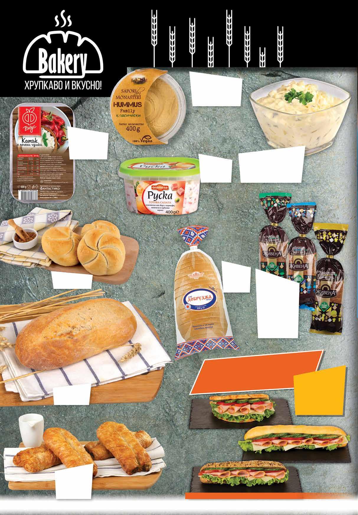 11.90 -33% 7 90 лв|кг 3 49 лв|бр 4.59 -23% 1 39 лв|бр 1.79 -22% 4.69 -19% 3 79 лв|бр 2.19 -31% 1 49 лв|бр 0.29 -48% 0 15 лв|бр 1.69 -41% 0 99 лв|бр 2.49 -28% 1 79 лв|бр 4.49 -26% 3 29 лв|бр Салата картофи с яйца и краставички ДЕНИТО насипна от щандова витрина Хумус SAPORI DEI MONASTERI различни видове 400 г Баничка със сирене; със сирене и спанак 120 г Пълнозърнест хляб ЖИВЕНА елда и овесени ядки; ръж, сусам и слънчоглед; семена тиква и слънчоглед; слънчоглед и чиа, 350 г Салата катък с печени чушки Ф ВКУС 400 г Хляб Добруджа ЕЛИАЗ нарязан 350 г Северняшко хлебче 300 г Бял земел 60 г Руска салата ОЛИНЕЗА 400 г *предложението е валидно за магазините със сини цени Вземи сандвич със свинско филе с отстъпка -20% 10 Продуктите се продават в количества, обичайни за едно домакинство. Декорацията към продуктите не е включена в тяхната цена. ТВ „Фантастико“ си запазва правото на промяна в цените.