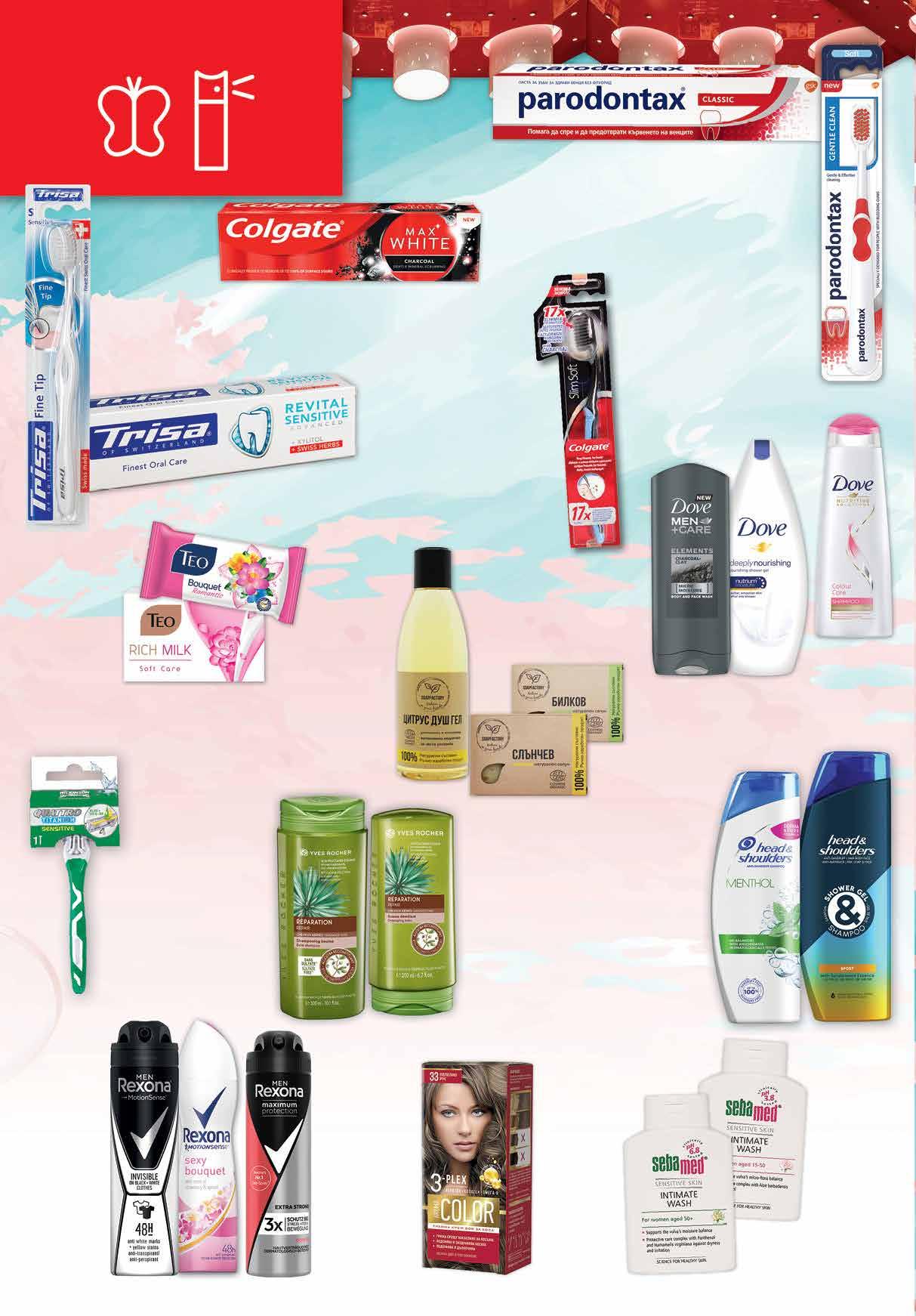 1.79 -33% 1 19 лв|бр 5.29 -24% 3 99 лв|бр сапун 6.89 -27% 4 99 лв|бр 8.99 -25% 6 6 9 лв|бр 10.69 -25% 7 99 лв|бр 9.39 -36% 5 99 лв|бр шампоан 0.89 -22% 0 69 лв|бр 70 г 2 79 лв|бр 7.39 -51% 3 59 лв|бр 9.69 -43% 5 49 лв|бр 6 99 лв|бр душгел 6 99 лв|бр 99 лв|бр Ph 6.8 16.99 -23% 12 99 лв|бр Ph 3.8 18.99 -26% 13 8.29 -43% 4 69 лв|бр четка 8.69 -47% 4 59 лв|бр 4 99 лв|бр 4 99 лв|бр 3.99 -30% 2 79 лв|бр 3 39 лв|бр 3 39 лв|бр Интимен гел SEBAMED Ph3.8; Ph6.8 200 мл Самобръсначка WILKINSON Quattro 1бр Четка за зъби PARODONTAX Expert Clean; Gum Teeth; Gentle Clean Паста за зъби PARОDONTAX Fluoridе; Herbal; Classic; Extra Fresh; Whitening; Ultra Clean 75 мл Паста за зъби 75 мл различни видове TRISA Паста за зъби COLGATE Max White Infinitе; Max White Optic; Max White; Max White & Protect; Max Clay; Max White Charcoal; Natural 75 мл Боя за коса AROMA Color различни видове 45 мл Део спрей 150 мл; Део рол-он 50 мл; Део стик 40-50 мл REXONA различни видове Четка за зъби TRISA FINE TIP SENSITIVE 1 бр Део спрей 150 мл maximum protection REXONA различни видове Шампоан Душгел 270; 300; 360 мл HEAD&SHOULDERS различни видове Сапун ТЕО различни видове 70 г; 90 г Душ гел; Шампоан DOVE различни видове 225 мл, 250 мл Душ гел цитрус, 220 мл; Сапун различни видове 110 г SOAPFACTORY Шампоан 300 мл; Балсам 200 мл; YVES ROCHER различни видове Четка за зъби COLGATE Slim Soft различни видове 20 Продуктите се продават в количества, обичайни за едно домакинство. Декорацията към продуктите не е включена в тяхната цена. ТВ „Фантастико“ си запазва правото на промяна в цените.