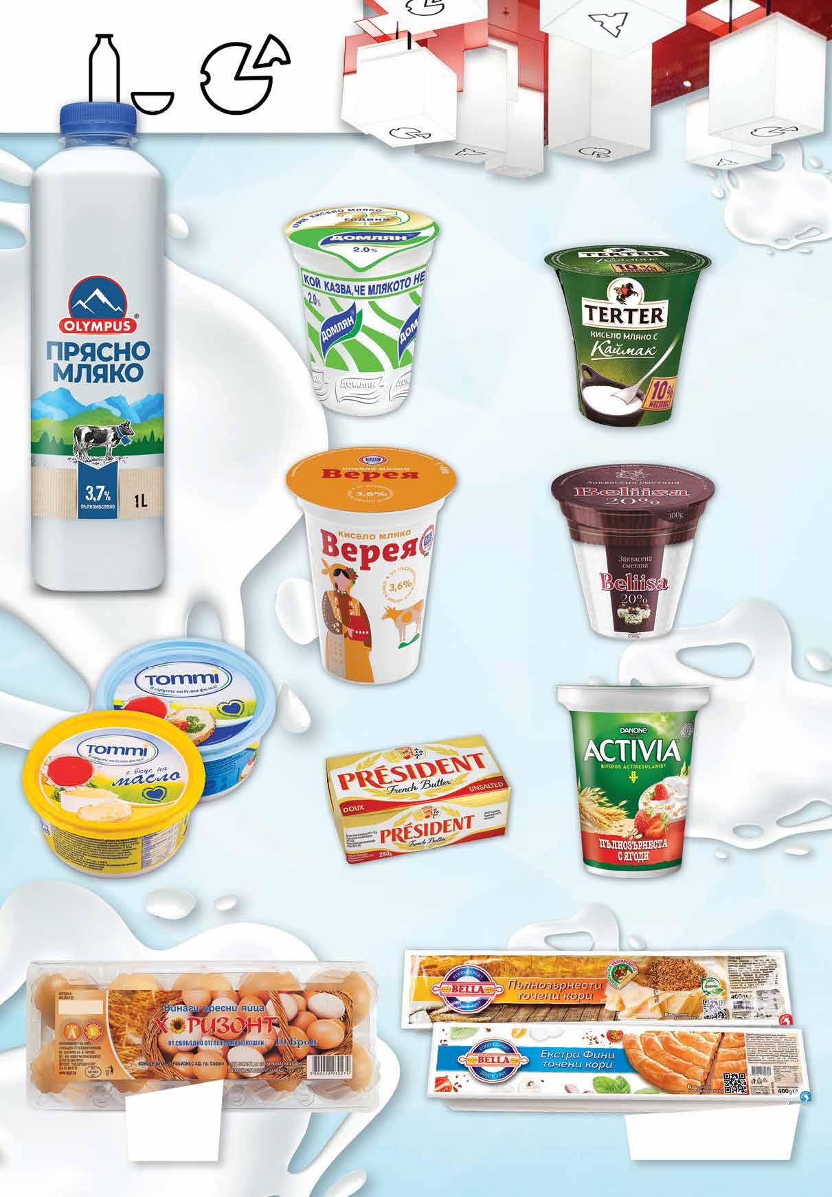 2.19 -22% 1 69 лв|бр 1.69 -26% 1 25 лв|бр 5.79 -25% 4 29 лв|бр 11.59 -20% 9 25 лв|бр 3.99 -32% 2 69 лв|бр пълнозърнести 3.99 -32% 2 69 лв|бр 2.69 -26% 1 99 лв|бр 1.75 -26% 1 29 лв|бр 4.09 -20% 3 25 лв|бр 3.49 -20% 2 79 лв|бр 2.99 -20% 2 39 лв|бр 2.99 -20% 2 39 лв|бр kласик Активиа DANONE Пълнозърнеста различни видове 280 г Кисело мляко с каймак TERTER масленост 10% 300 г Кисело мляко ДОМЛЯН масленост 2% 500 г Краве масло PRESIDENT класическо 250 г Tочени кори BELLA екстра фини; пълнозърнести 400 г Яйца от свободни кокошки ХОРИЗОНТ размер L, 10 бр Заквасена сметана БЕЛИИСА масленост 20% 300 г Кисело мляко ВЕРЕЯ масленост 3,6% по БДС, 400 г Прясно мляко OLYMPUS масленост 3,7% 1 л Продукт за мазане TOMMI класик; с вкус на масло 500 г 4 Продуктите се продават в количества, обичайни за едно домакинство. Декорацията към продуктите не е включена в тяхната цена. ТВ „Фантастико“ си запазва правото на промяна в цените.