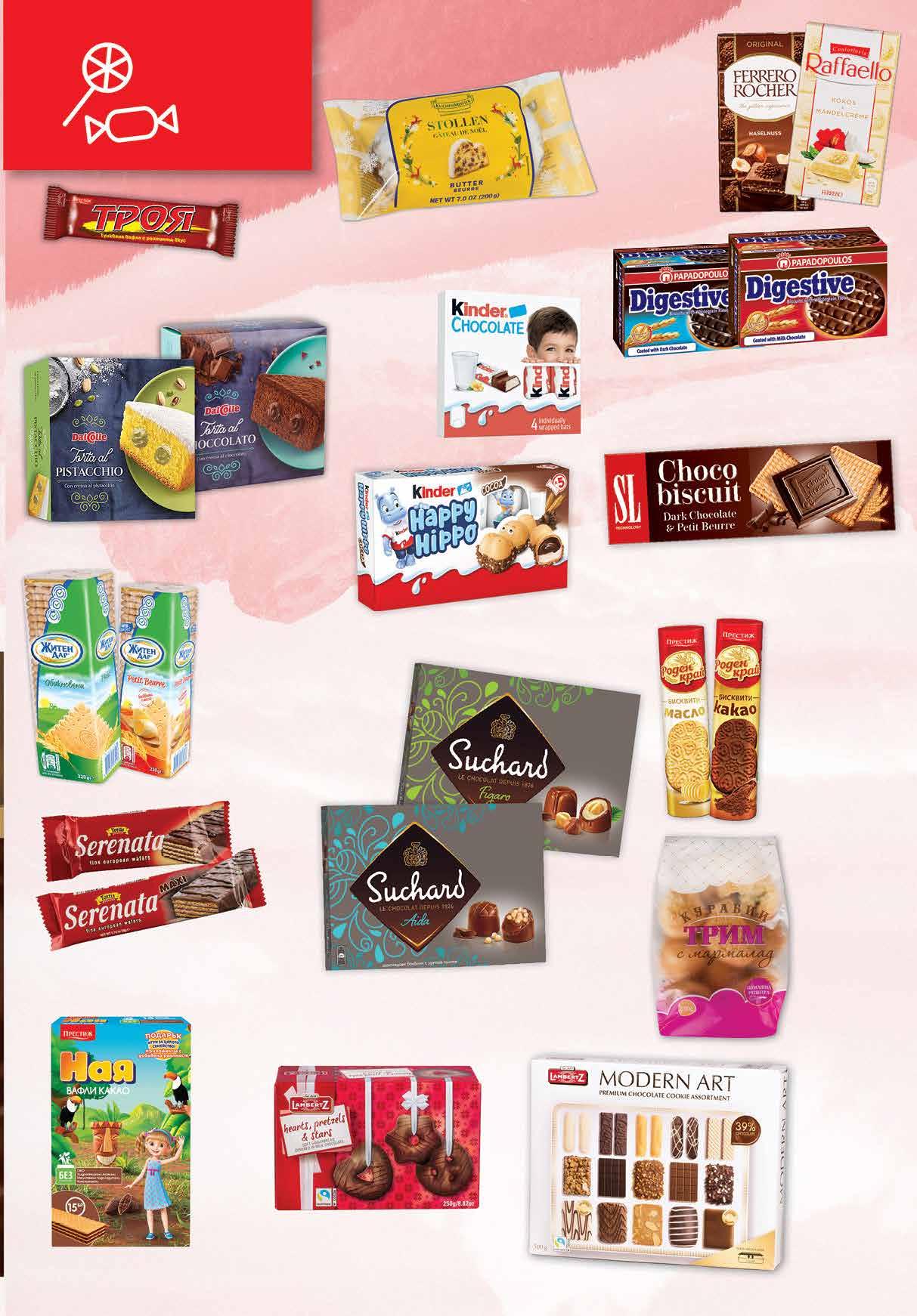 3.69 -32% 2 49 лв|бр 1.89 -31% 1 29 лв|бр 3 99 лв|бр 4.69 -27% 3 39 лв|бр 4.99 -26% 3 69 лв|бр 1.59 -31% 1 09 лв|бр 0.95 -27% 0 69 лв|бр 50Г 0.69 -28% 0 49 лв|бр 31Г 2.29 -30% 1 59 лв|бр 5.29 -34% 3 49 лв|бр 17.49 -42% 9 99 лв|бр 9.49 -36% 5 99 лв|бр 0.49 -34% 0 32 лв|бр 4.99 -30% 3 49 лв|бр 3.99 -25% 2 99 лв|бр 3.09 -29% 2 19 лв|бр 3.29 -24% 2 49 лв|бр Шоколад FERRERO ROCHER различни видове; RAFFAELLO 90 г Бонбони SUCHARD различни видове 126 -153 г Бисквити ЖИТЕН ДАР Обикновени; Petit Beurre 220 г Джинджифилови сладки LAMBERTZ 250 г Бисквити и вафли Modern Art LAMBERTZ 500 г Вафли НАЯ 321 - 350 г Бисквити DIGESTIVE с млечен шоколад; с тъмен шоколад 200 г Вафла ТРОЯ 28 г Кейк DAL COLLE различни видове 300 г Десерт KINDER Happy Hippo 103 г Шоколад KINDER 50 г Бисквити SL Choco Biscuit различни видове 125 г Вафла SERENATA шоколад 31 г; Maxi шоколад 50 г Коледен щолен KUCHENMEISTER различни видове 200 г Бисквити РОДЕН КРАЙ различни видове 165-170г Курабии с мармалад ТРИМ 250 г 15 ТВ „Фантастико” не носи отговорност за допуснати печатни грешки. Количествата са лимитирани! Предложенията са валидни до сряда 22.00ч. на 07.12.2022 г.