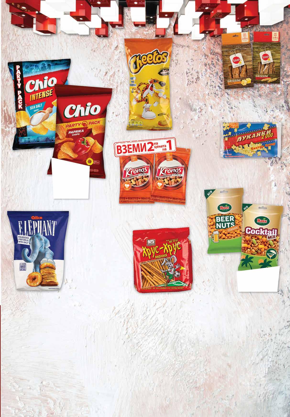 0.00 -00% 0 00 лв|бр 0.00 -00% 0 00 лв|бр 0.00 -00% 0 00 лв|бр 3.29 -24% 2 49 лв|бр 2.15 -35% 1 39 лв|бр 3.96 -50% 1 98 лв|2бр 4.99 -40% 2 99 лв|бр фъстъци 4.39 -34% 2 89 лв|бр коктейл 3.19 -25% 2 39 лв|бр 1.19 -25% 0 89 лв|бр 4.99 -34% 3 29 лв|бр 4.99 -34% 3 29 лв|бр intense 1.19 -25% 0 89 лв|бр x x x Снакс CHEETOS различни вкусове 70 -95 г Печени фъстъци КРОНОС 2 бр х 130 г Ядки ROIS бирени фъстъци класик; коктейл микс 300 г Солети ХРУС-ХРУС класик 250 г Гризини TITINI различни видове 100 г Пуканки за микровълнова фурна 2000 100 г Претцел ALKA Elephant различни видове 160-180 г Чипс CHIO различни вкусове 255 г; Чипс CHIO Intense сметана и билки; морска сол 240 г 19 ТВ „Фантастико” не носи отговорност за допуснати печатни грешки. Количествата са лимитирани! Предложенията са валидни до сряда 22.00ч. на 30.11.2022 г. ТАЛОНИ НА “ЛЕТИЩЕ СОФИЯ” ЕАД И ДП “РВД” ЛЕГЕНДА ЦЕНИ: Уважаеми клиенти, обръщайте внимание на цветовото обозначение на цената. Тук може да намерите списък с магазините, разпределени спрямо цвета на цените и наличността на промоциите. ЧЕРВЕНА ЦЕНА: предлагат се в цялата верига ЗЕЛЕНА ЦЕНА: Ф6 район Студентски, бул. Г.М. Димитров №77; Ф7 жк Овча купел 1, ул. Монтевидео №98; Ф11 жк Хаджи Димитър, ул. Васил Кънчев/ул. Баба Вида №29; Ф14 гр. Ботевград, ул. Витоша 1А; Ф15 жк Люлин 1, ул. Тома Георгиев №1; Ф16 жк Люлин 6, бул. Джавахарлал Неру №26А; Ф17 жк Надежда 3, бул. Хан Кубрат №26, до бл. 301; Ф18 жк Стрелбище, ул. Нишава №138; Ф19 кв Бояна, бул. Ал. Пушкин №64; Ф21 жк Младост 4, ул. Д-р Атанас Москов №15; Ф22 Студентски град, ул. Акад. Борис Стефанов №22; Ф23 жк Надежда 2, ул. Свети Никола Нови №14; Ф27 жк Надежда 1, ул. Й. Лютибродски/ ул. Царевец до бл.118; Ф28 жк Гео Милев, ул. Коста Лулчев №52; Ф29 гр. Кюстендил, ул. Цар Освободител №231; Ф32 жк Младост 3, ул. 102, срещу бл. 321; Ф34 жк Хаджи Димитър, ул. Макгахан №81; Ф35 жк Дружба 2, бул. Проф. Цветан Лазаров №140; Ф36 жк Дървеница, бул. Св. Климент Охридски №15; Ф38 жк Овча купел, ул. Любляна №42А; Ф39 жк Разсадника – Коньовица, ул. Хъшове №4; Ф40 жк Гео Милев, ул. Николай Коперник №27;Ф41 гр. Елин Пелин, ул. Витоша №7; Ф42 жк Младост 1, бул. Йерусалим №22; Ф43 кв. Манастирски ливади, ул. Пирин №51А; Ф44 гр. Банкя, кв. Изгрев, ул. Стефан Стамболов №138; Ф45 гр. Перник, ж.к. Изток, ул. Юрий Гагарин №52. СИНЯ ЦЕНА: Ф6 район Студентски, бул. Г.М. Димитров №77; Ф12 жк Младост 4, ул. “Александър Паскалев” №3; Ф15 жк Люлин 1, ул. Тома Георгиев №1; Ф16 жк Люлин 6, бул. Джавахарлал Неру №26А; Ф17 жк Надежда 3, бул. Хан Кубрат №26, до бл. 301; Ф22 Студентски град, ул. Акад. Борис Стефанов №22; Ф28 жк Гео Милев, ул. Коста Лулчев №52; Ф30 кв Драгалевци, бул. Черни връх №204; Ф34 жк Хаджи Димитър, ул. Макгахан №81; Ф36 жк Дървеница, бул. Св. Климент Охридски №15; Ф38 жк Овча купел, ул. Любляна №42А; Ф40 жк Гео Милев, ул. Николай Коперник №27; Ф42 жк Младост 1, бул. Йерусалим №22; Ф44 гр. Банкя, кв. Изгрев, ул. Стефан Стамболов №138; Ф45 гр. Перник, ж.к. Изток, ул. Юрий Гагарин №52. Във всички обекти на верига Фантастико можете да заплатите със следните карти и ваучери: РАБОТНО ВРЕМЕ: *от 7.30 до 22.00 ч. Ф1 ул. Оборище №72; Ф2 жк Красно село, ул. Хубча №2; Ф3 бул. Мадрид №8; Ф4 жк Западен парк, ул. Суходолска №2; Ф5 бул. Цариградско шосе №56; Ф7 жк Овча купел 1, ул. Монтевидео №98; Ф8 жк Лозенец, бул. Черни връх №20; Ф9 Спирка Оряхово, бул. Сливница №65; Ф10 жк Борово, ул. Ген. Стефан Тошев, бл.223; Ф11 жк Хаджи Димитър, ул. Васил Кънчев/ул. Баба Вида; Ф12 жк Младост 4, ул. “Александър Паскалев” №3; Ф15 жк Люлин 1, ул. Тома Георгиев №1; Ф16 жк Люлин 6, бул. Джавахарлал Неру №26А; Ф17 жк Надежда 3, бул. Хан Кубрат №26, до бл. 301; Ф18 жк Стрелбище, ул. Ни