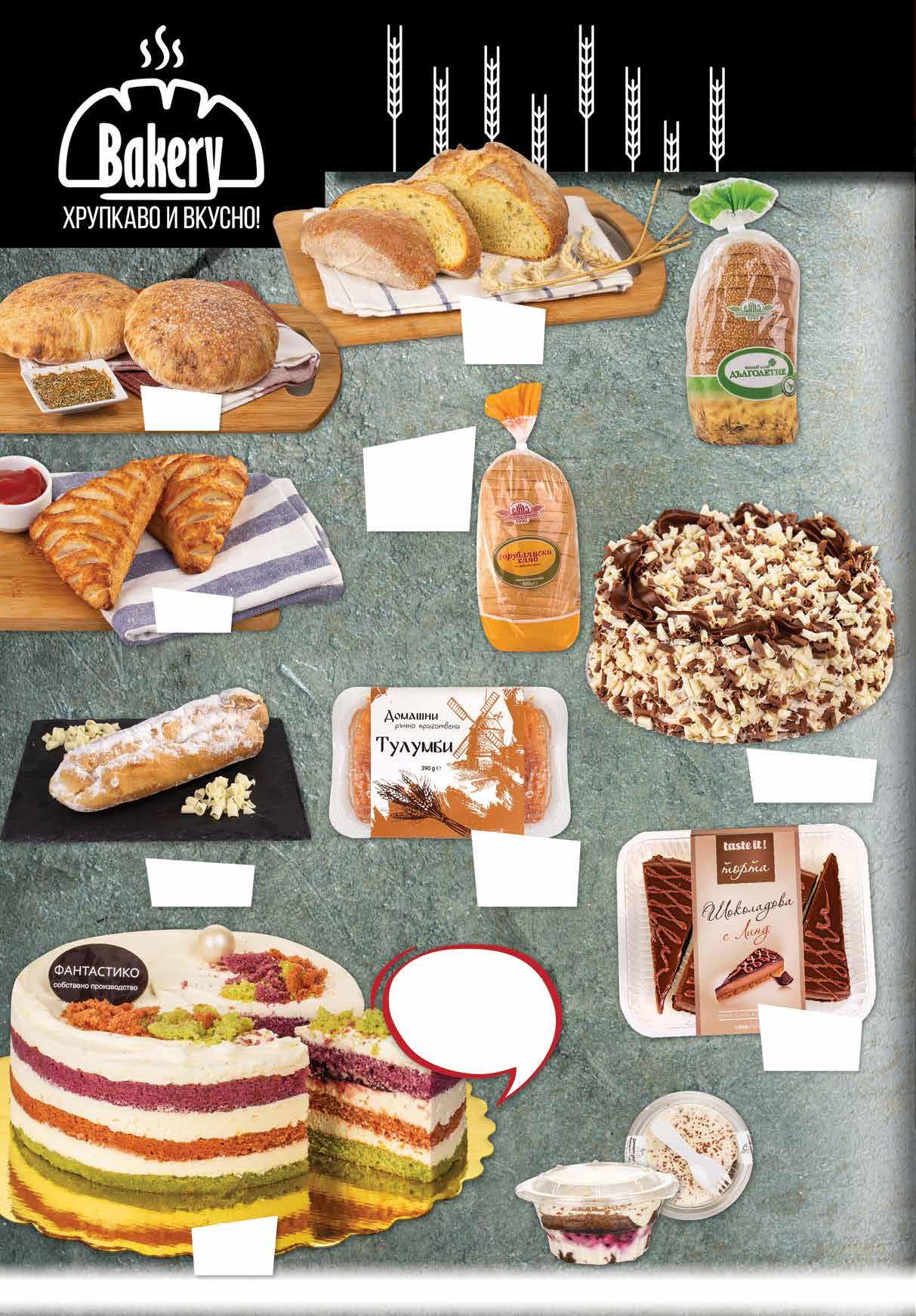 0.99 -34% 0 65 лв|бр 0.89 -22% 0 69 лв|бр 2.45 -18% 1 99 лв|бр 2.19 -22% 1 69 лв|бр 2.19 -22% 1 69 лв|бр 99 лв|бр 19.99 -25% 14 1.69 -29% 1 19 лв|бр 99 лв|бр 24.99 -32% 16 99 лв|бр 14.99 -26% 10 4.29 -30% 2 99 лв|бр 6.79 -26% 4 99 лв|бр Пица 65 г Пърленка 160 г Типов хляб Дълголетие ЕЛИАЗ 450 г Пшениченоцаревичен хляб 400 г Горублянски хляб ЕЛИАЗ тип Добруджа нарязан 600 г Торта Рейнбоу 750 г Пухкави кексови блатове с лек и ефирен млечен крем и приятен вкус на боровинки. Eклер с пудра захар 100 г Домашна торта ДВЕТЕ ФУКЛИ 750 г Шоколадова торта с Линд TASTE IT 500 г Домашен десерт Маскарпоне ФРЕШ ЛЕНД боровинка; праскова 170 г Тулумби СЕМЕЙНИ СЛАДКИ 390 г 10 Продуктите се продават в количества, обичайни за едно домакинство. Декорацията към продуктите не е включена в тяхната цена. ТВ „Фантастико“ си запазва правото на промяна в цените.