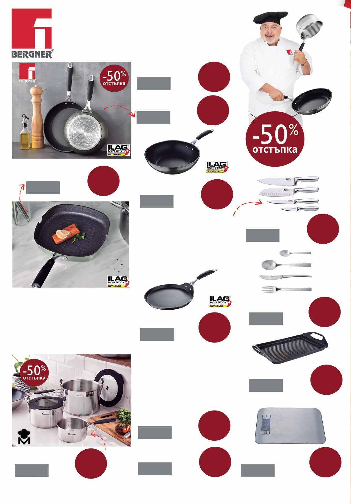 редовна цена 55,99лв/бр промо цена с 5 точки 111,99лв/бр Грил плоча 34х26см Masterpro Smart редовна цена 39,99лв/бр Кухненска везна капацитет от 2гр5000гр Masterpro Smart ФУНКЦИОНАЛНОСТ, КАЧЕСТВО И ДИЗАЙН! ПРЕОТКРИЙ ГОТВАЧА В СЕБЕ СИ! Тиган 24х4.8см Bergner Midnight 29,99лв/бр 59,99лв/бр редовна цена промо цена с 5 точки Тиган 28х5.2см Bergner Midnight 37,99лв/бр промо цена с 5 точки 75,99лв/бр редовна цена Прибори за хранене 24 броя Masterpro Smart 59,99лв/к-т 119,99лв/к-т редовна цена промо цена с 5 точки Уок тиган 28х8см Bergner Midnight Комплект ножове 4 части Masterpro Smart 45,99лв/бр 39,99лв/к-т 91,99лв/бр 79,99лв/к-т редовна цена редовна цена промо цена с 5 точки промо цена с 5 точки Кoмплект ножове 4 части Masterpro Smart Нож на главен готвач 20см • Нож Сантоку 17.5см • Универсален нож 12.5см Нож за белене 8.75см • Изработени от неръждаема стомана с цяла дръжка Технология на закаляване за дълготрайно представяне Тиган за палачинки 24х2см Bergner Midnight 29,99лв/бр промо цена с 5 точки 45,99лв/бр промо цена с 5 точки Съдове за готвене Bergner Midnight Произведени от кован алуминий за отлична здравина и равномерно разпределение на топлината Изключително издръжливо незалепващо покритие ILAG Ultimate, без PFOA, олово и кадмий, за лесно готвене с малко мазнина и безпроблемно почистване Надеждна дръжка от неръждаема стомана с меко на допир покритие • Подходящи за всички видове котлони, вкл. индукционни Съдове за готвене Masterpro Smart • Произведени от висококачествена неръждаема стомана 18/10, която е матирана отвътре и полирана отвън • Удобни дръжки от неръждаема стомана обвити с предпазващ от изгаряне силикон • Капакът е изработен от боросиликатно стъкло и топлоустойчив силикон и освен като капак на тенджера служи като гевгир и предпазна подложка за горещи съдове • Индукционното дъно тип сандвич осигурява бързо и равномерно нагряване и добро задържане на топлина Грил тиган 28х28х4.5см Bergner Midnight 91,99лв/бр редовна цена Тенджера с капак 24см 7.2л. Masterpro Smart 69,99лв/бр 139,99лв/бр промо цена с 5 точки Тенджера с капак 20см 3.6л Masterpro Smart Касерола 16см 1.5л Masterpro Smart 59,99лв/бр 25,99лв/бр 119,99лв/бр редовна цена промо цена с 5 точки промо цена с 5 точки Събирай промоточки при пазаруване във Фантастико от 03.11.2022 г. до 11.01.2023 г. и вземи 50% отстъпка от цената на избрани продукти от сериите Smart / Midnight до 18.01.2023 г. При всяко пазаруване в обектите на търговска верига Фантастико за всеки 10 лв. от Вашата покупка ще получавате на касата по 1 промо точка (10 лв. = 1 точка; 20 лв. = 2 точки; 30 лв. = 3 точки и т.н.) Залепете получените промо точки на обозначеното в паспорта място. Всички цени са за един брой. редовна цена 51,99лв/бр редовна цена 59,99лв/бр редовна цена 19,99лв/бр промо цена с 5 точки 12